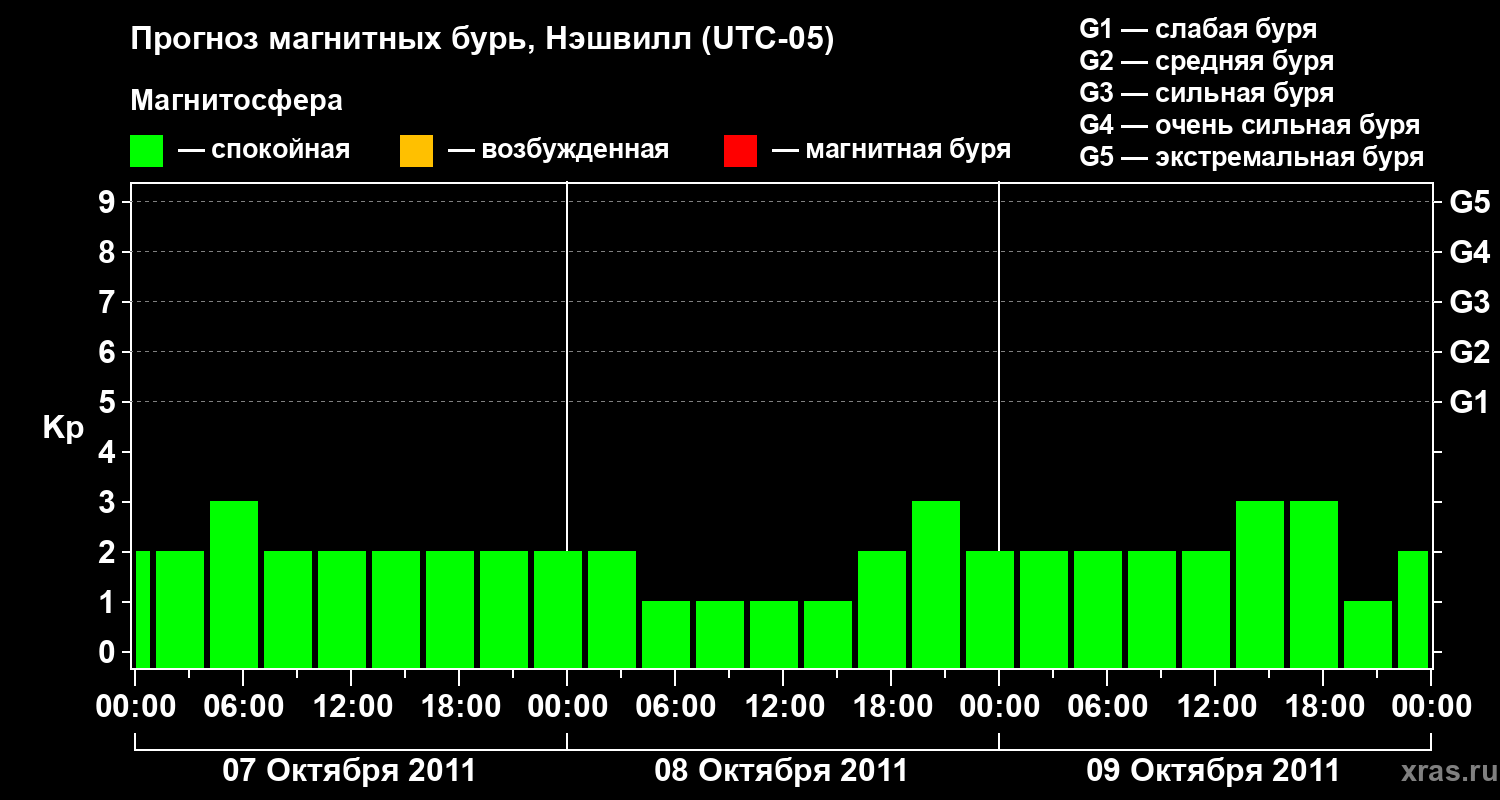 Прогноз магнитных бурь в Нэшвилле — 7 октября 2011 года