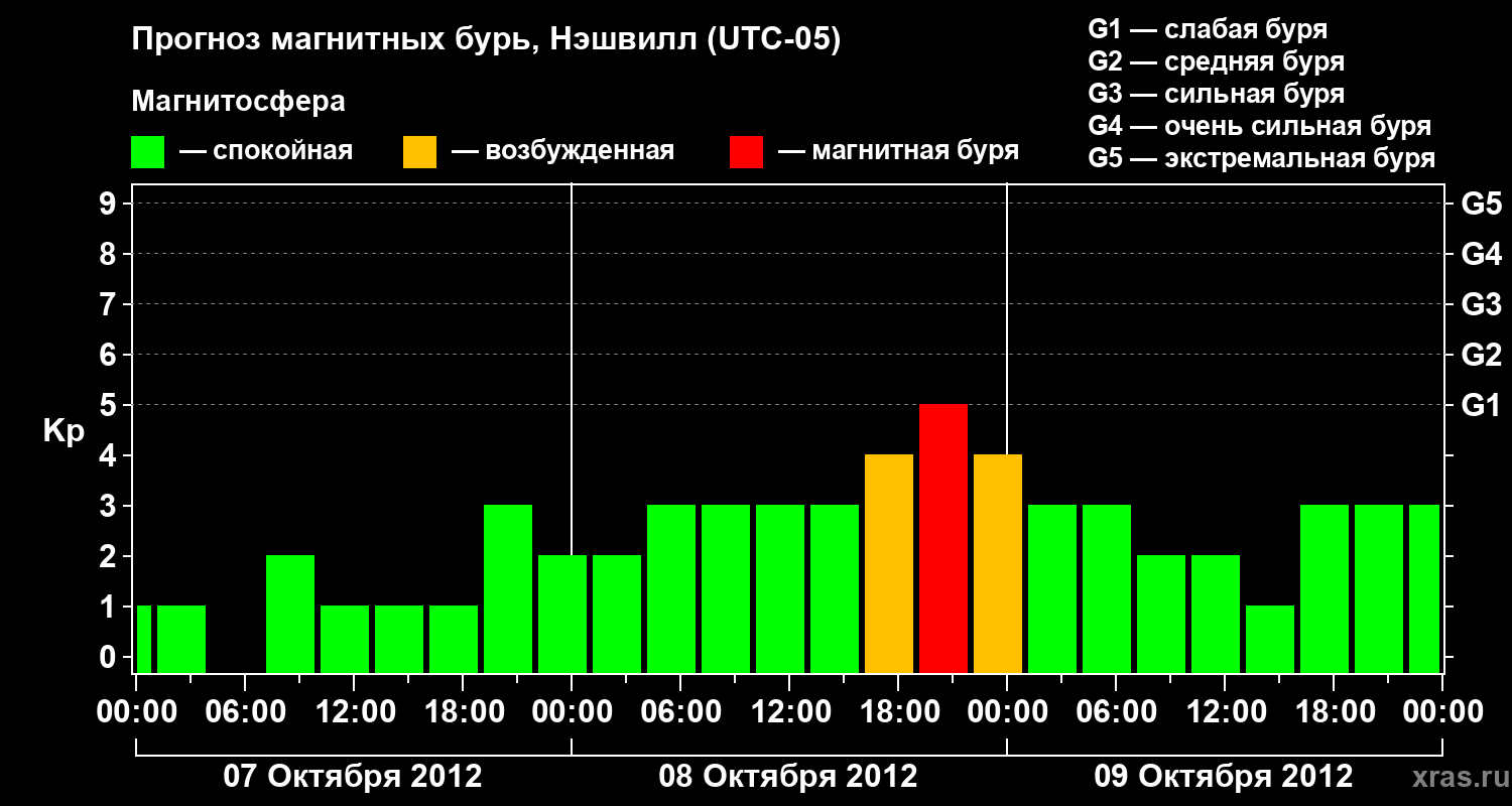 Прогноз магнитных бурь в Нэшвилле — 7 октября 2012 года