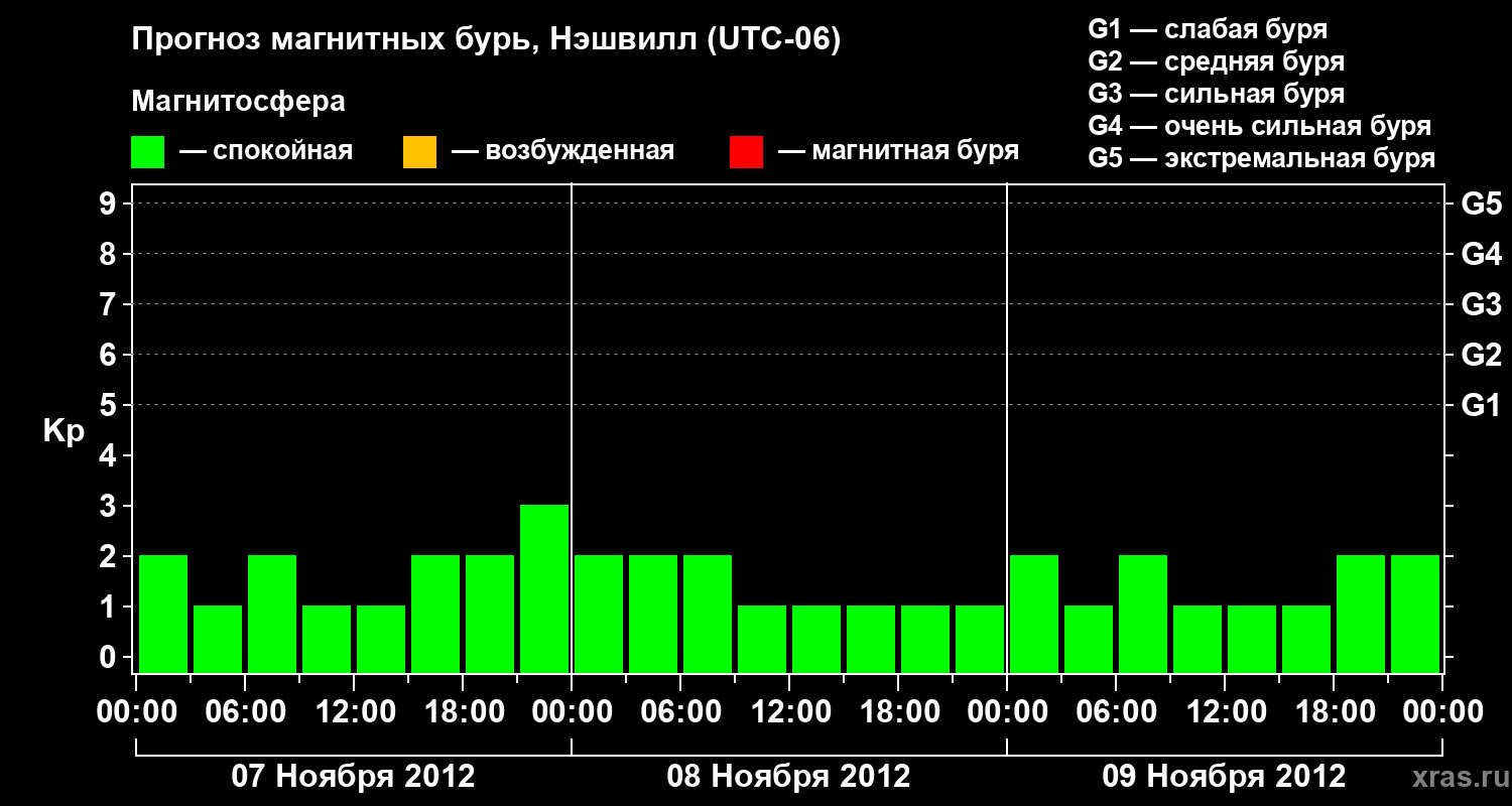 Прогноз магнитных бурь в Нэшвилле — 7 ноября 2012 года