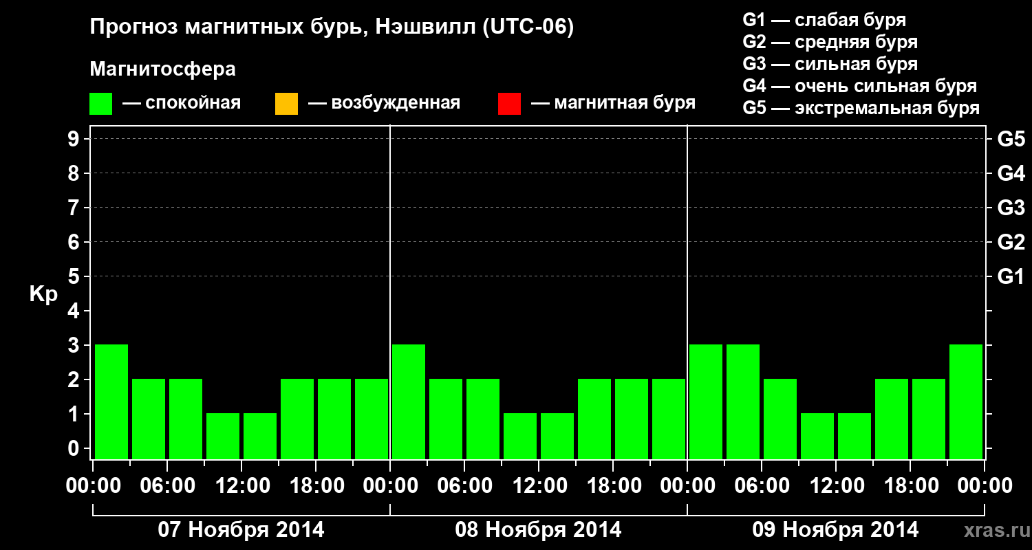 Прогноз магнитных бурь в Нэшвилле — 7 ноября 2014 года