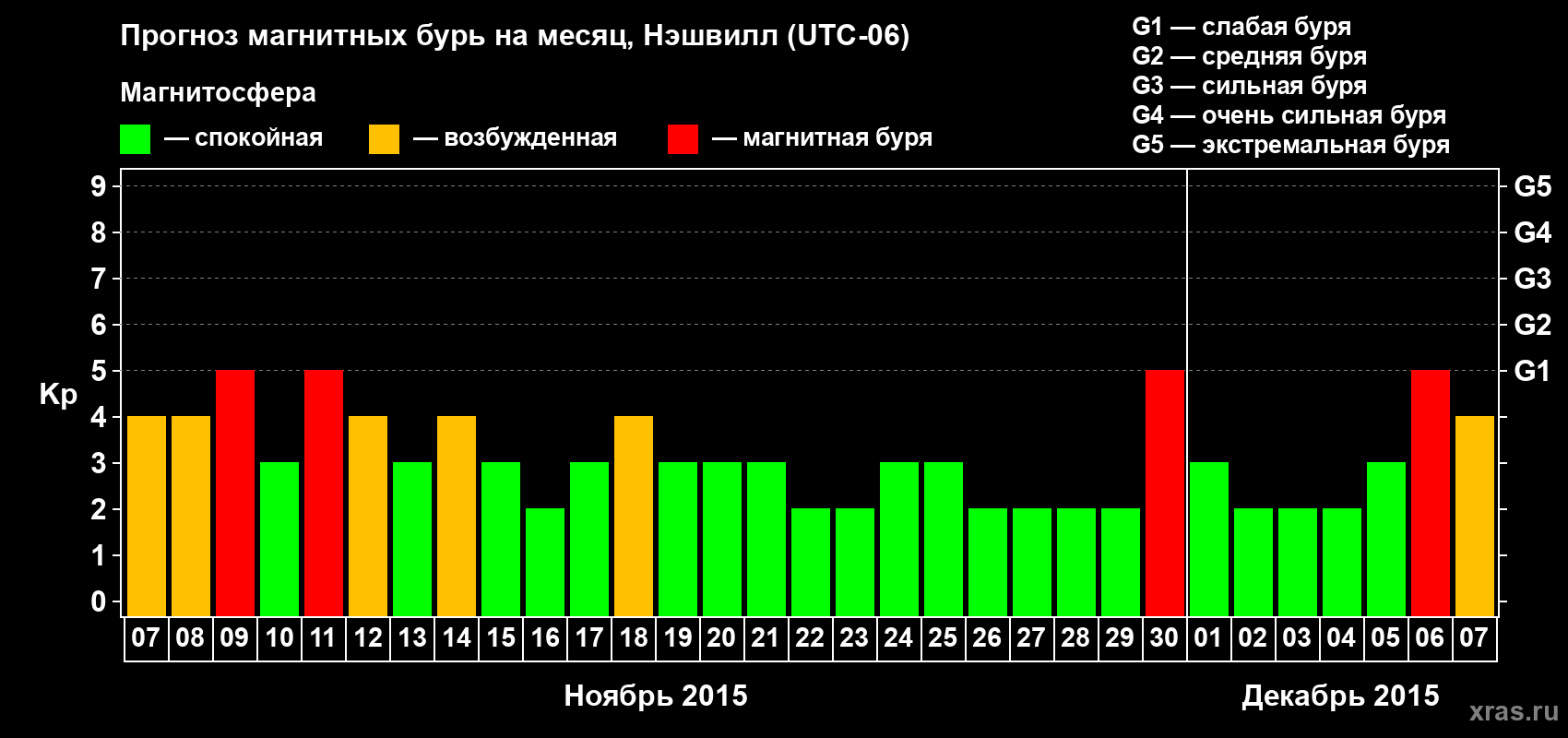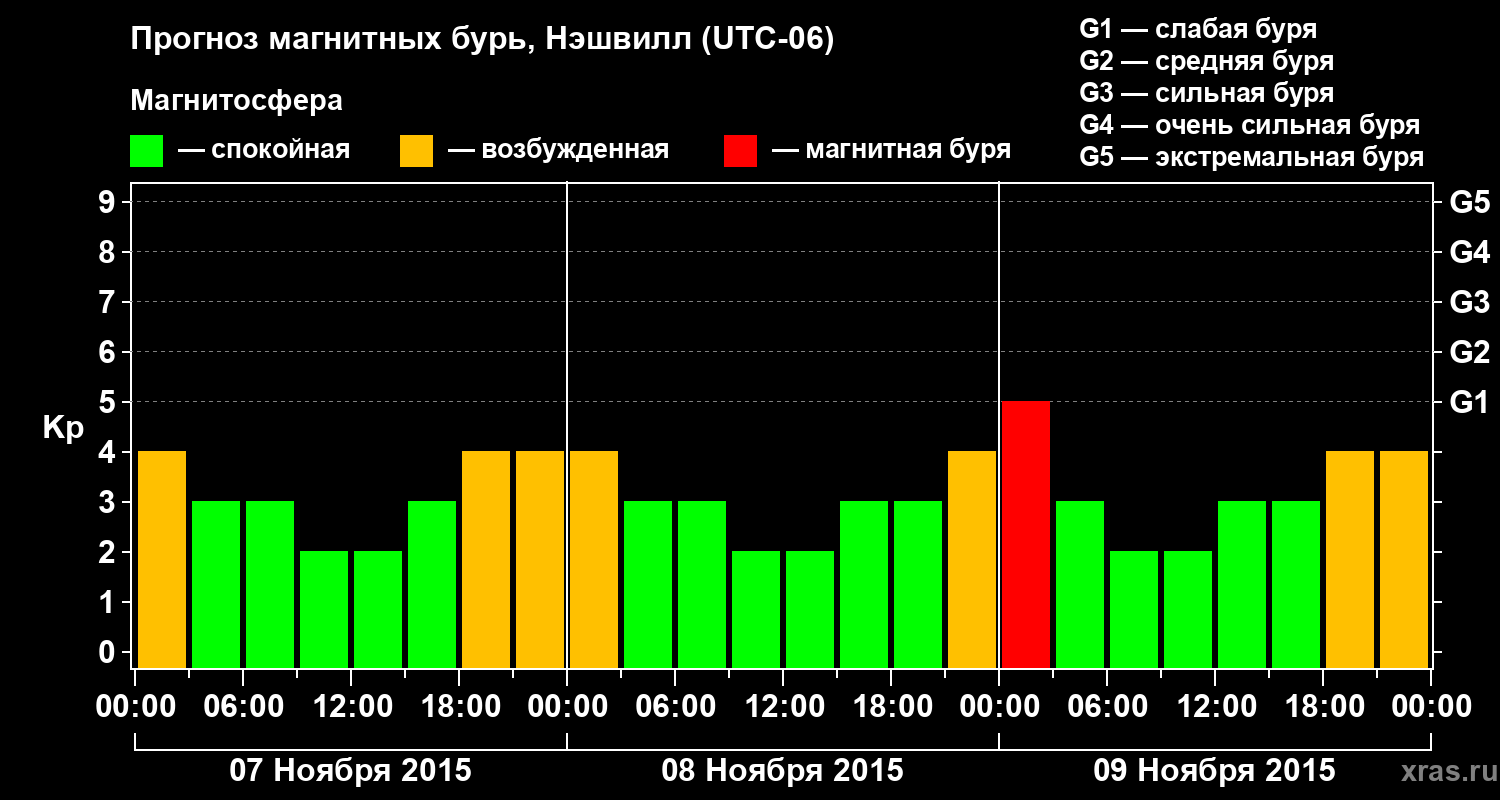 Прогноз магнитных бурь в Нэшвилле — 7 ноября 2015 года