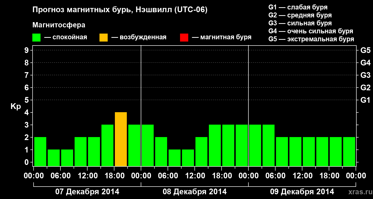 Прогноз магнитных бурь в Нэшвилле — 7 декабря 2014 года