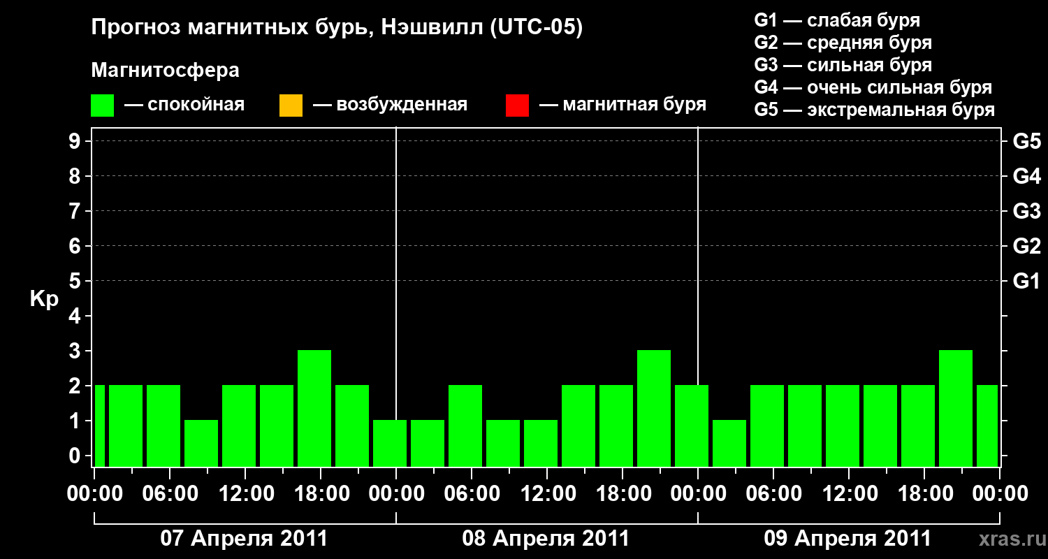 Прогноз магнитных бурь в Нэшвилле — 7 апреля 2011 года