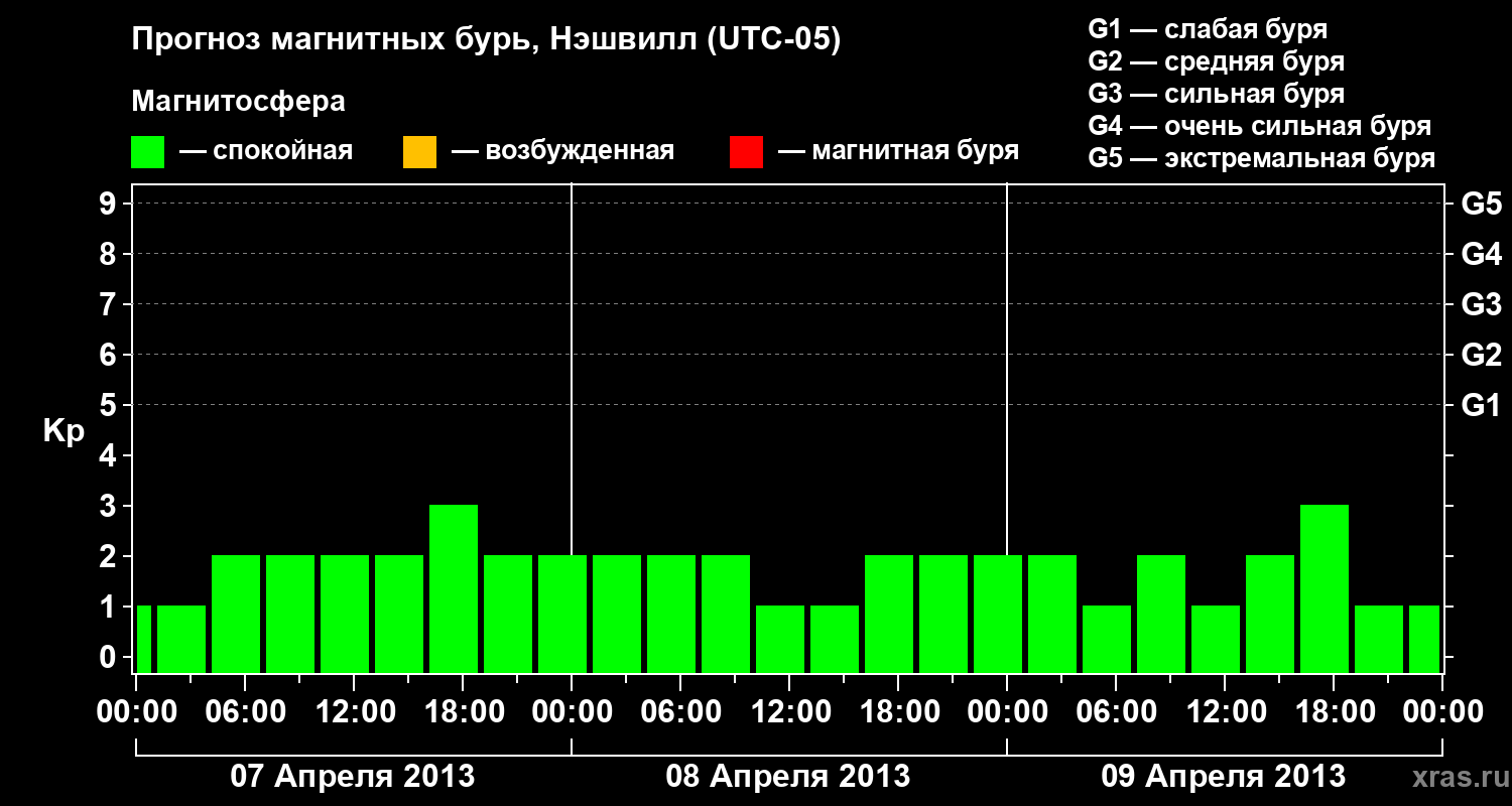 Прогноз магнитных бурь в Нэшвилле — 7 апреля 2013 года