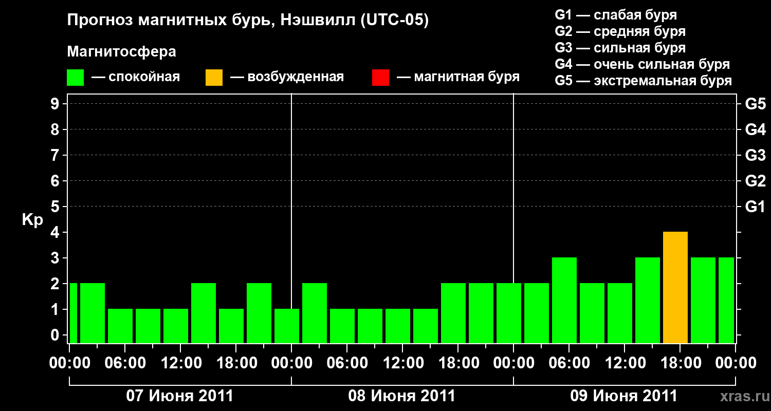 Прогноз магнитных бурь в Нэшвилле — 7 июня 2011 года
