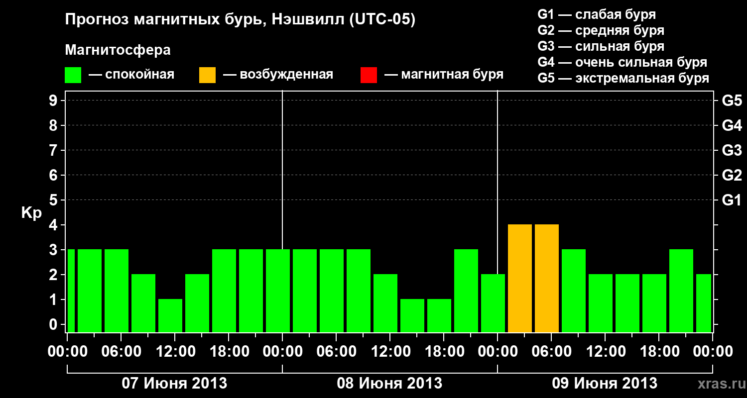 Прогноз магнитных бурь в Нэшвилле — 7 июня 2013 года