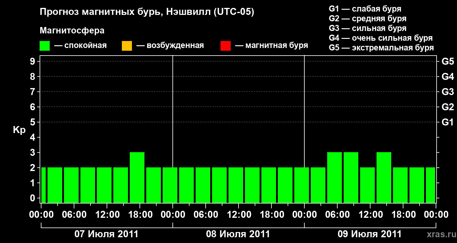 Прогноз магнитных бурь в Нэшвилле на 7 июля 2011 года