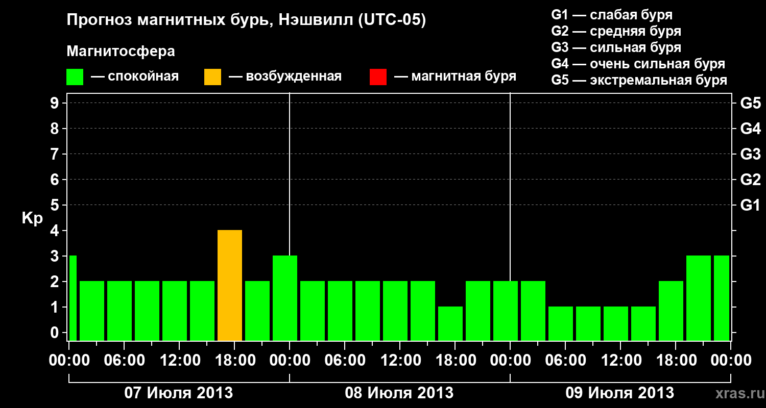 Прогноз магнитных бурь в Нэшвилле — 7 июля 2013 года