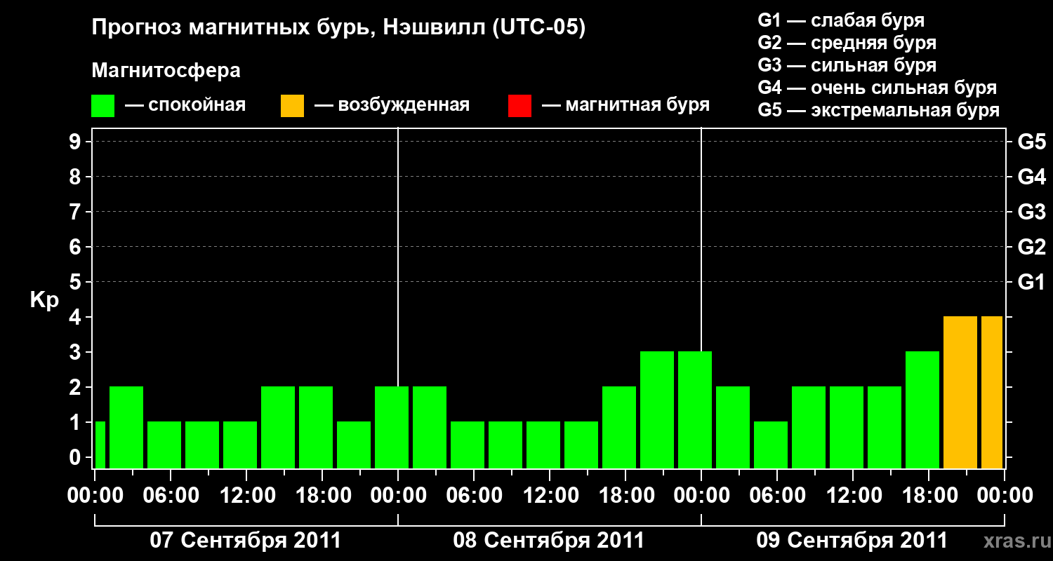 Прогноз магнитных бурь в Нэшвилле — 7 сентября 2011 года