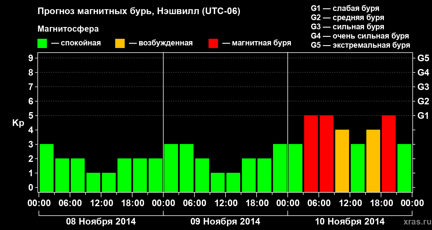 Прогноз магнитных бурь в Нэшвилле — 8 ноября 2014 года