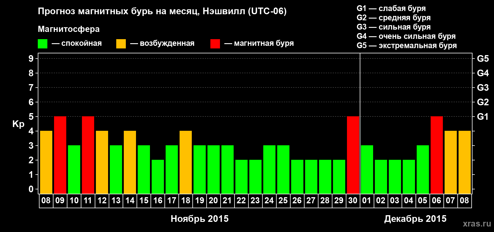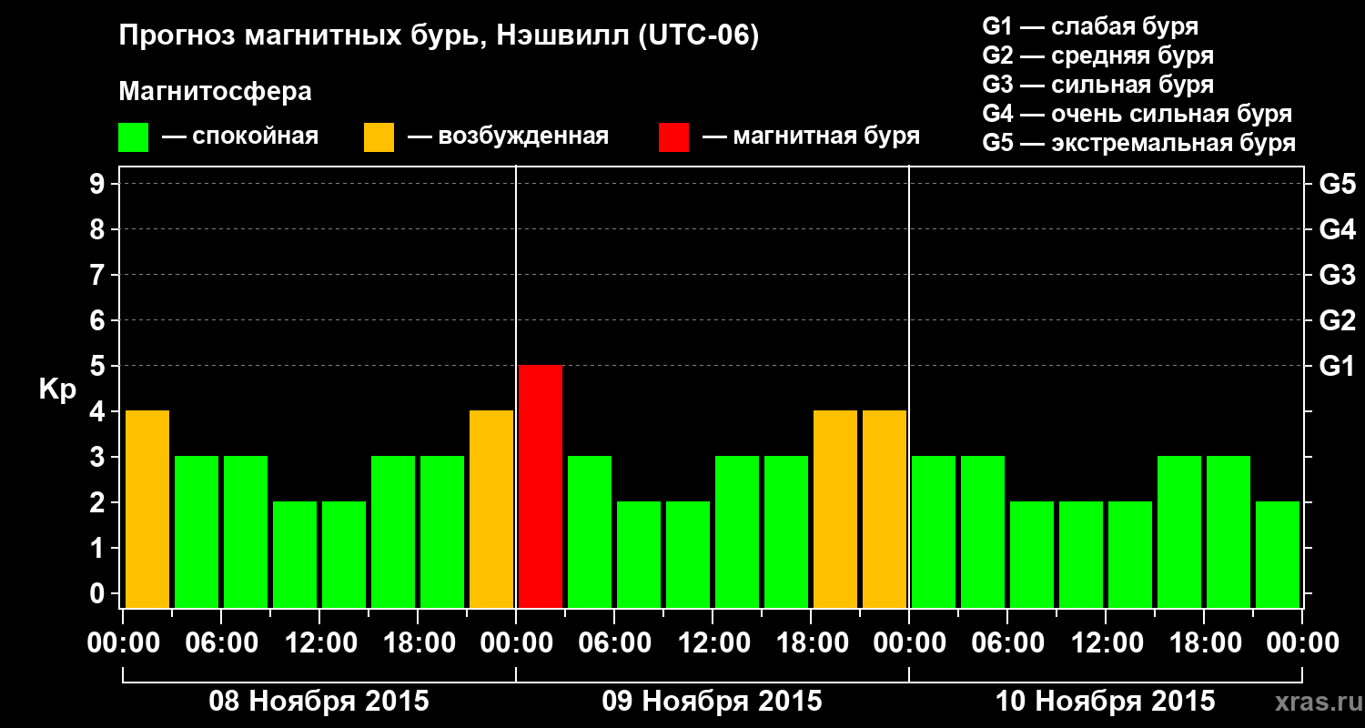 Прогноз магнитных бурь в Нэшвилле — 8 ноября 2015 года