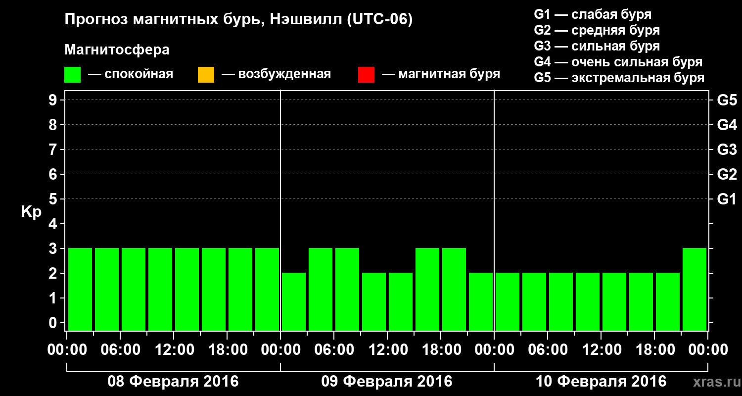 Прогноз магнитных бурь в Нэшвилле — 8 февраля 2016 года