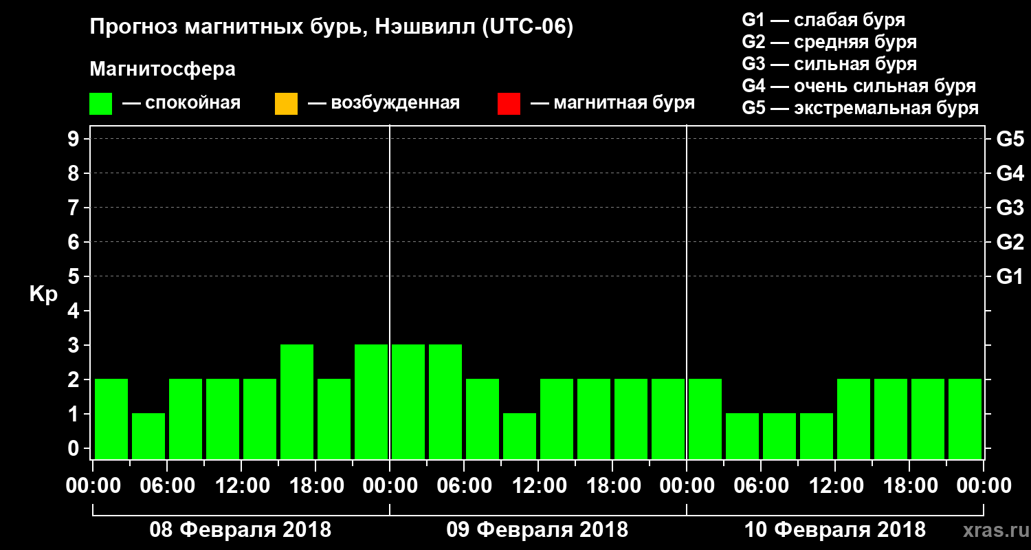 Прогноз магнитных бурь в Нэшвилле — 8 февраля 2018 года
