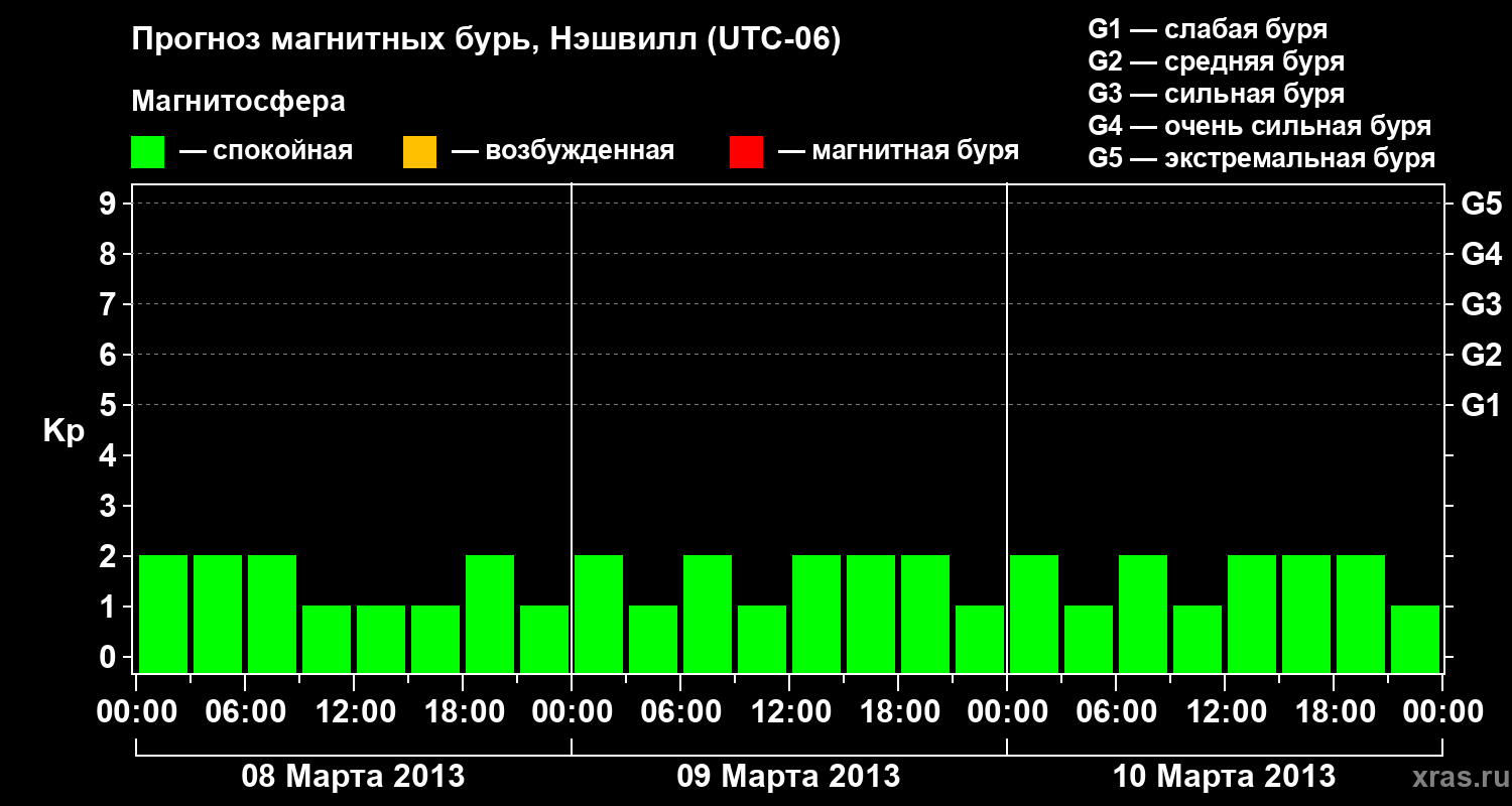 Прогноз магнитных бурь в Нэшвилле — 8 марта 2013 года
