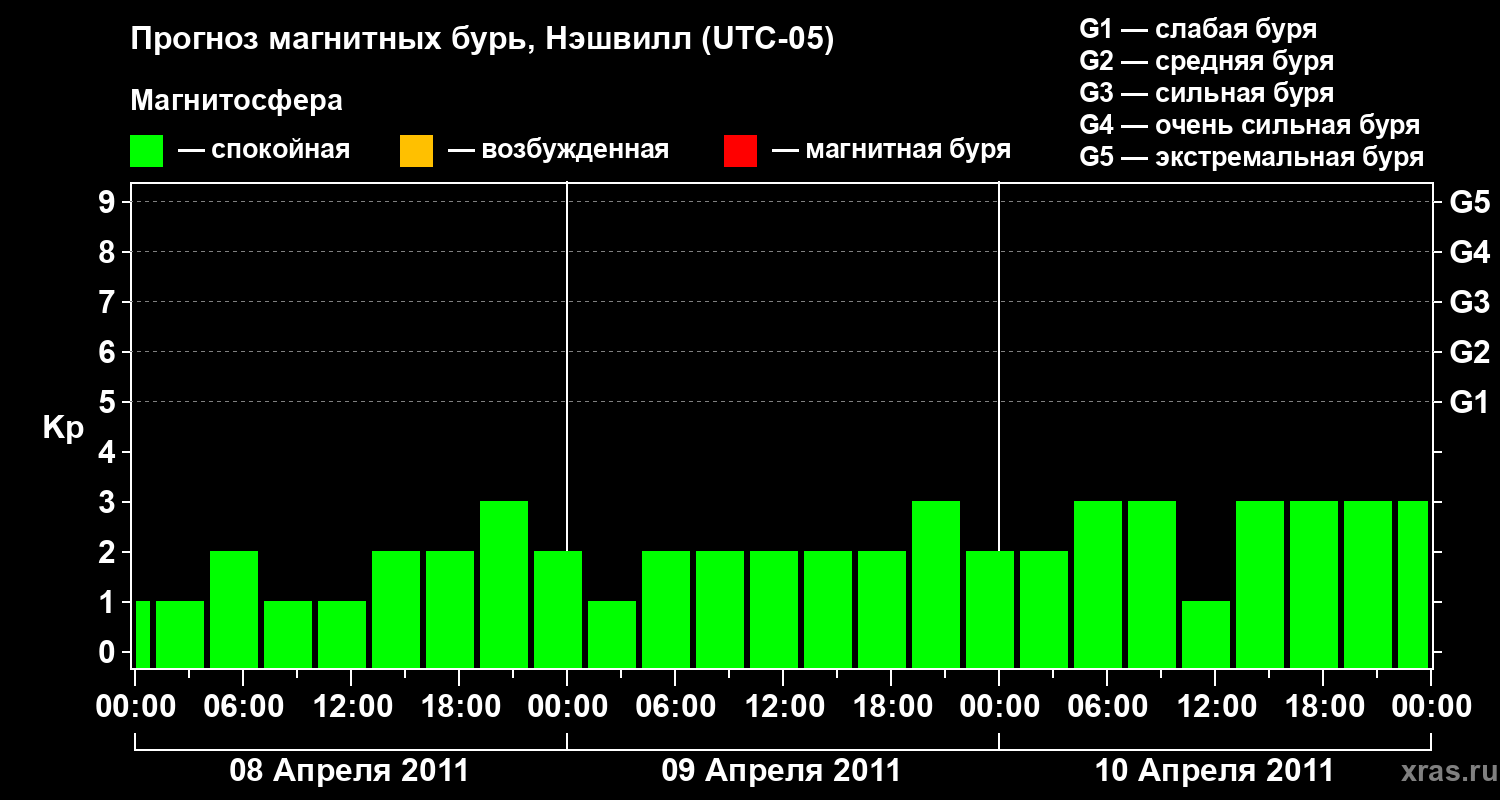 Прогноз магнитных бурь в Нэшвилле — 8 апреля 2011 года