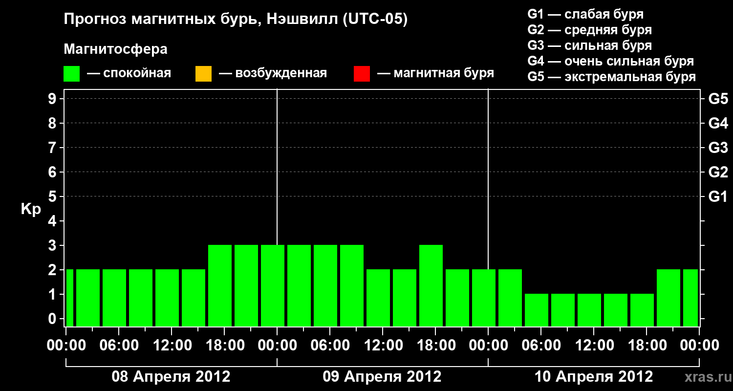 Прогноз магнитных бурь в Нэшвилле — 8 апреля 2012 года