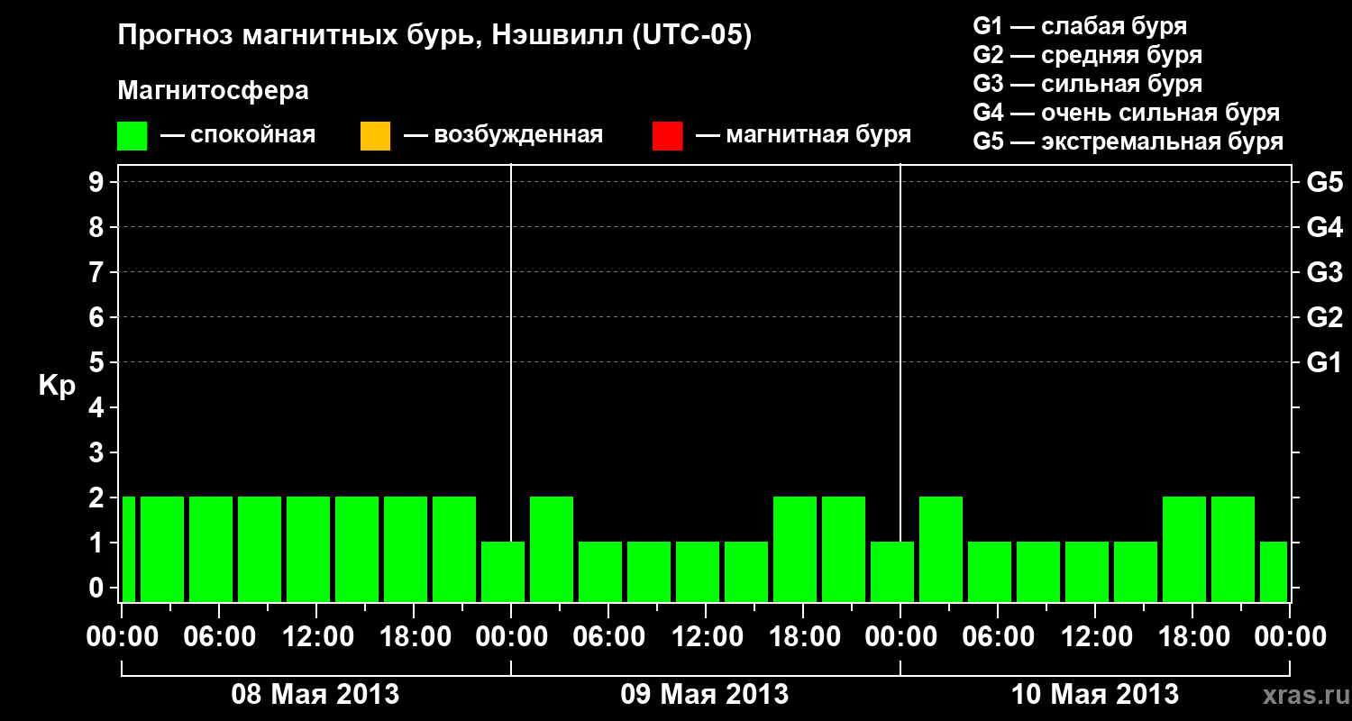 Прогноз магнитных бурь в Нэшвилле — 8 мая 2013 года