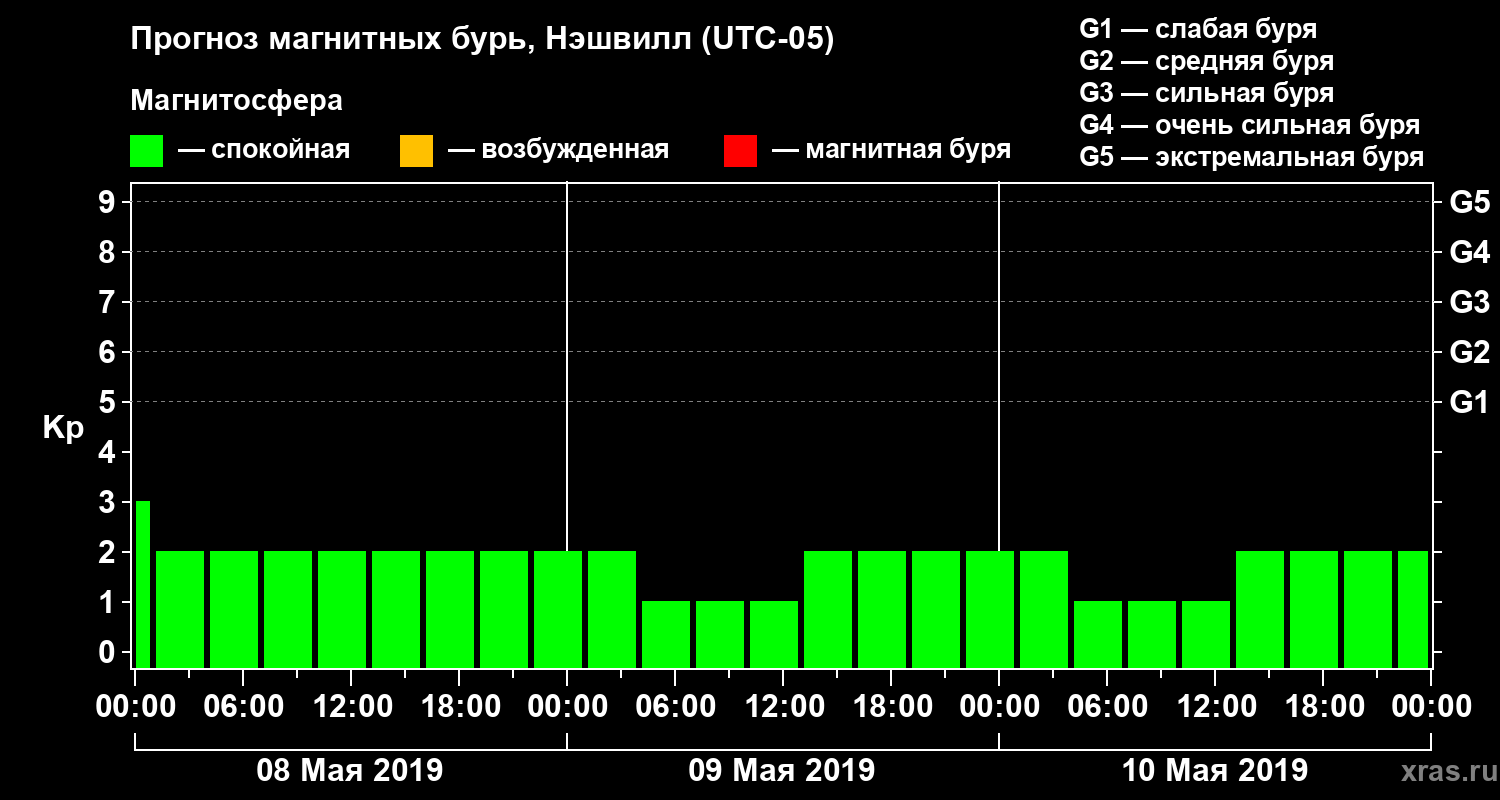 Прогноз магнитных бурь в Нэшвилле — 8 мая 2019 года