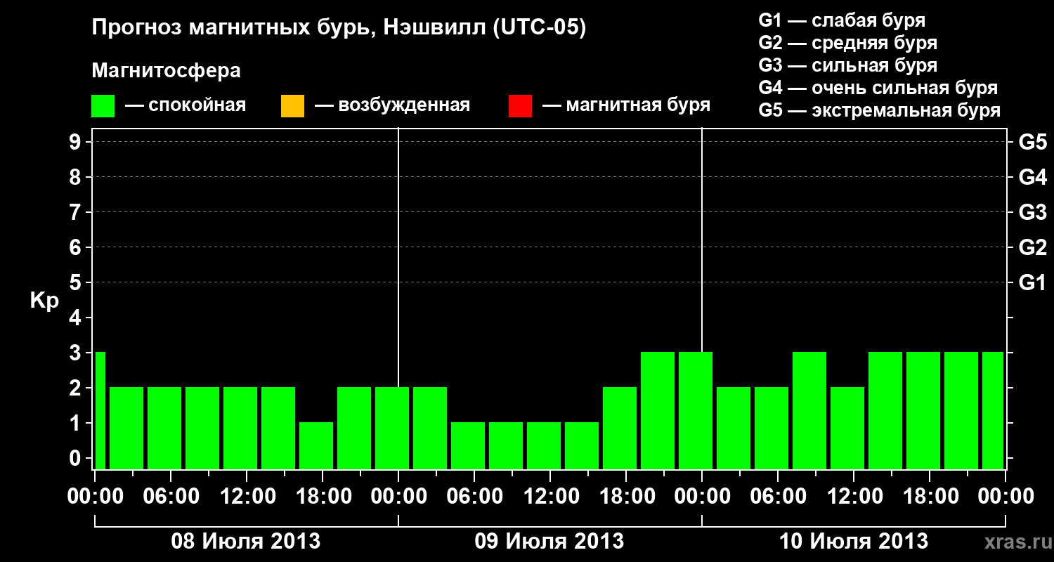 Прогноз магнитных бурь в Нэшвилле — 8 июля 2013 года