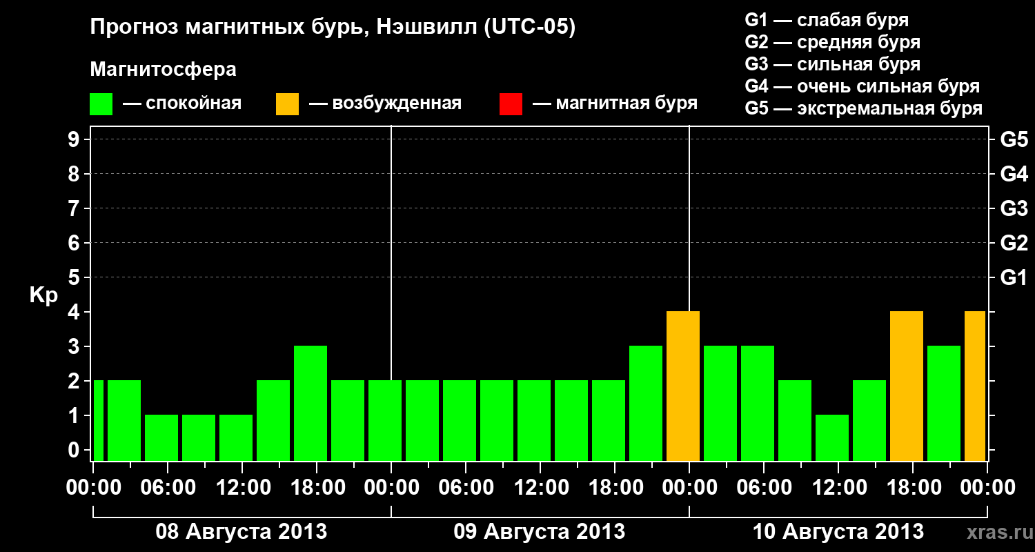 Прогноз магнитных бурь в Нэшвилле — 8 августа 2013 года
