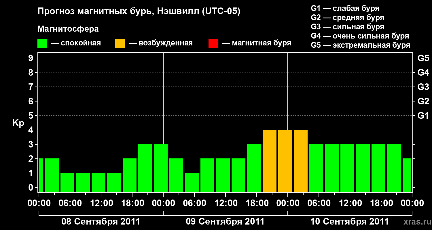 Прогноз магнитных бурь в Нэшвилле — 8 сентября 2011 года