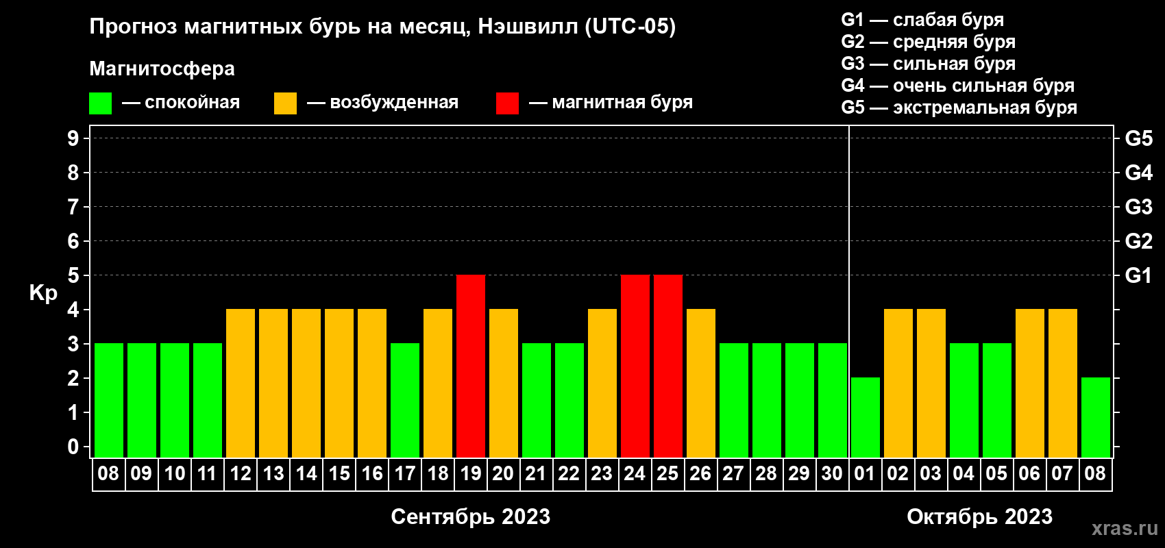 Прогноз магнитных бурь в Нэшвилле на 8 сентября 2023 года