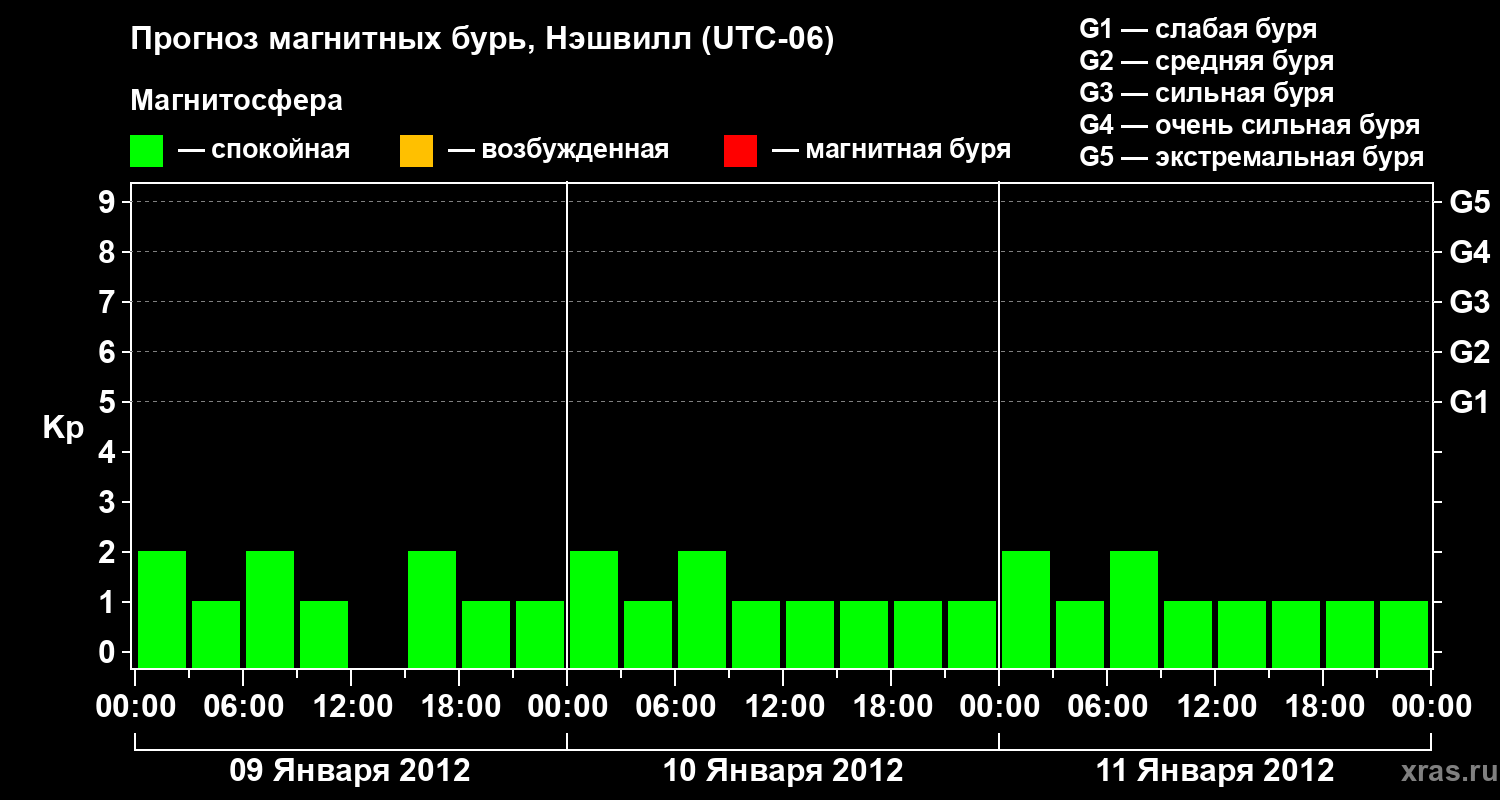 Прогноз магнитных бурь в Нэшвилле — 9 января 2012 года