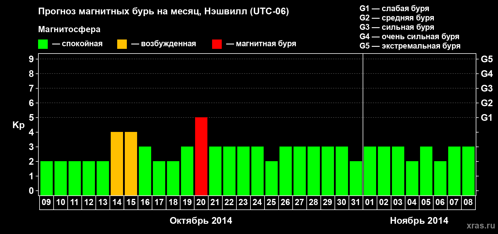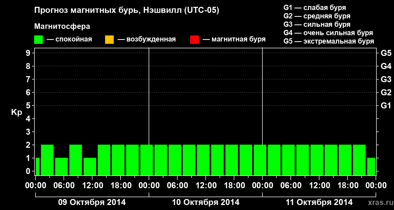 Прогноз магнитных бурь в Нэшвилле — 9 октября 2014 года