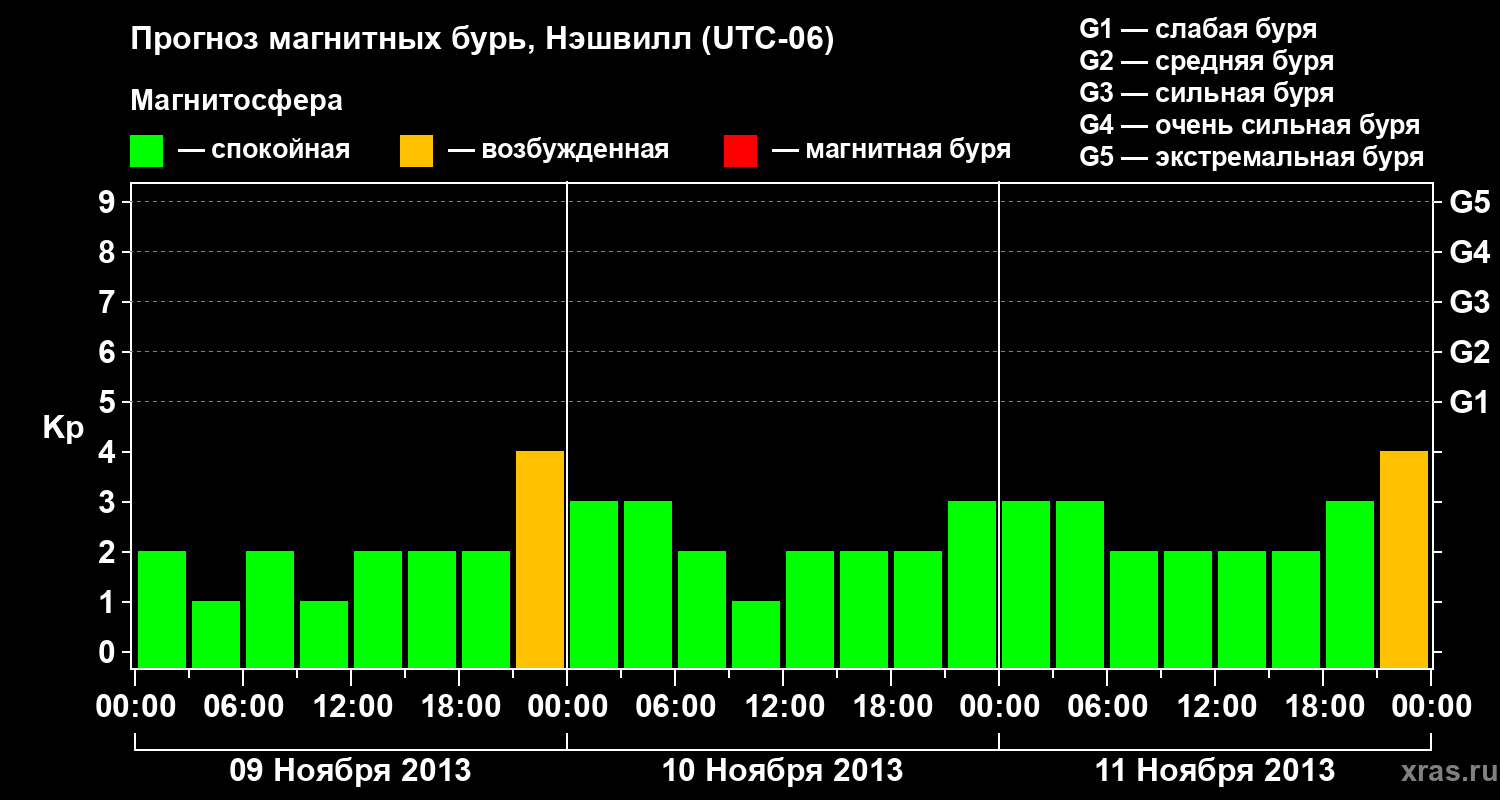 Прогноз магнитных бурь в Нэшвилле — 9 ноября 2013 года