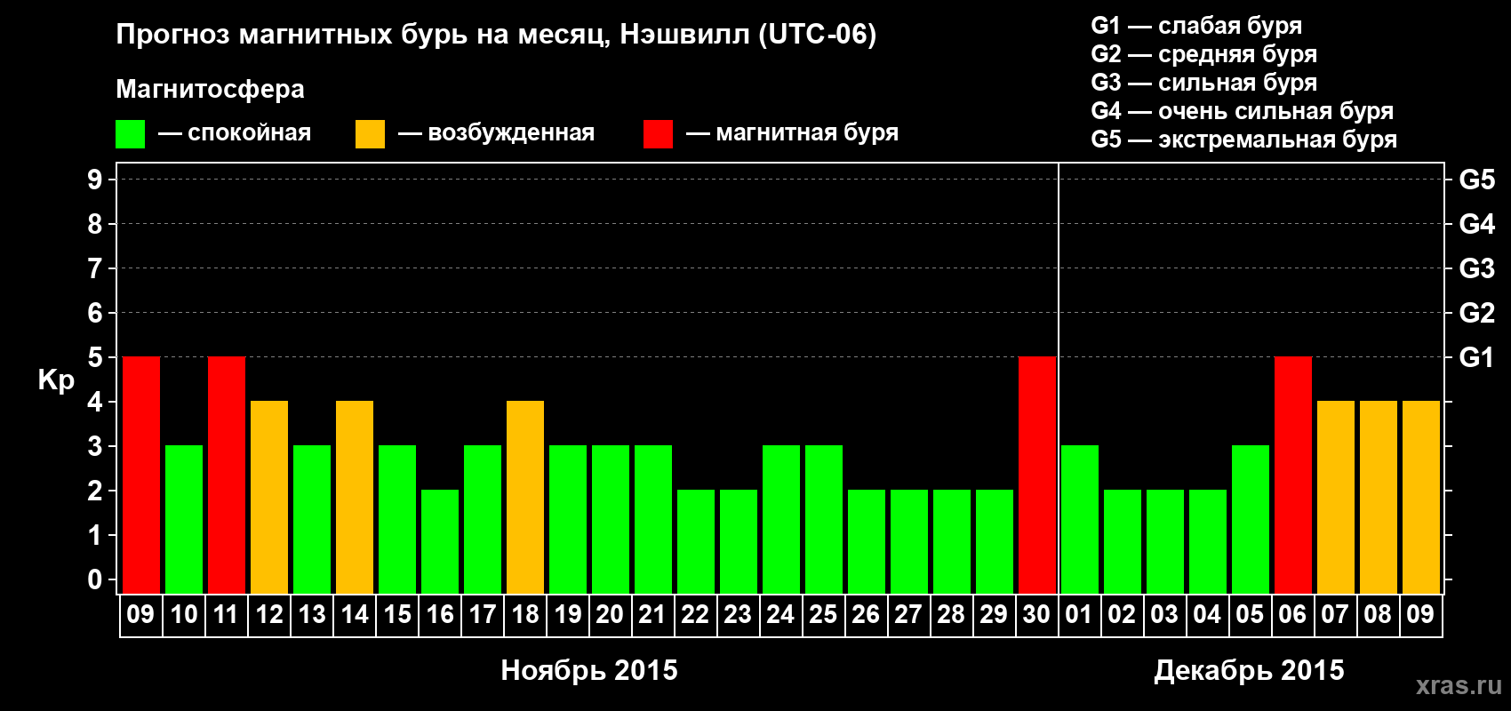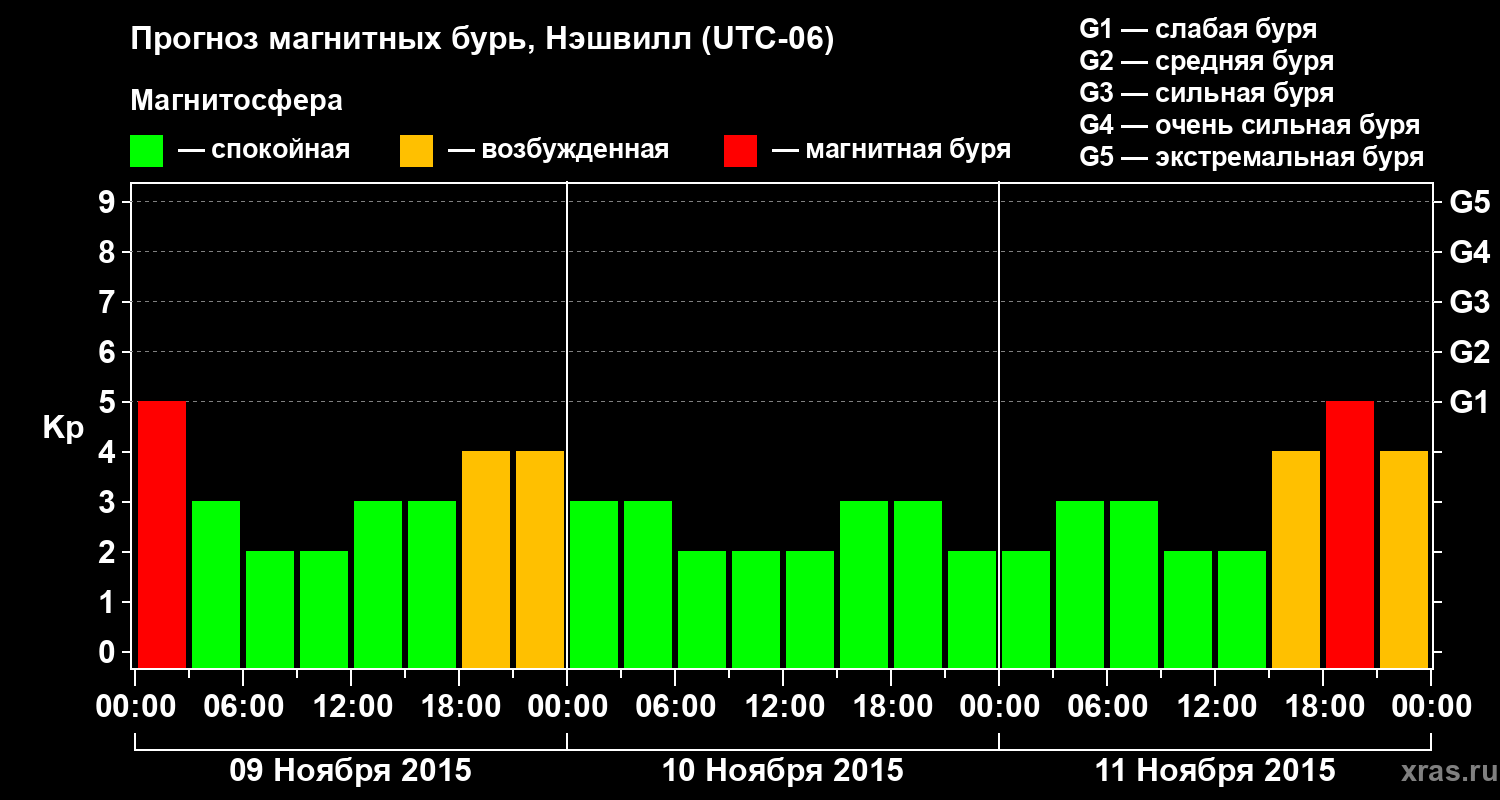 Прогноз магнитных бурь в Нэшвилле — 9 ноября 2015 года