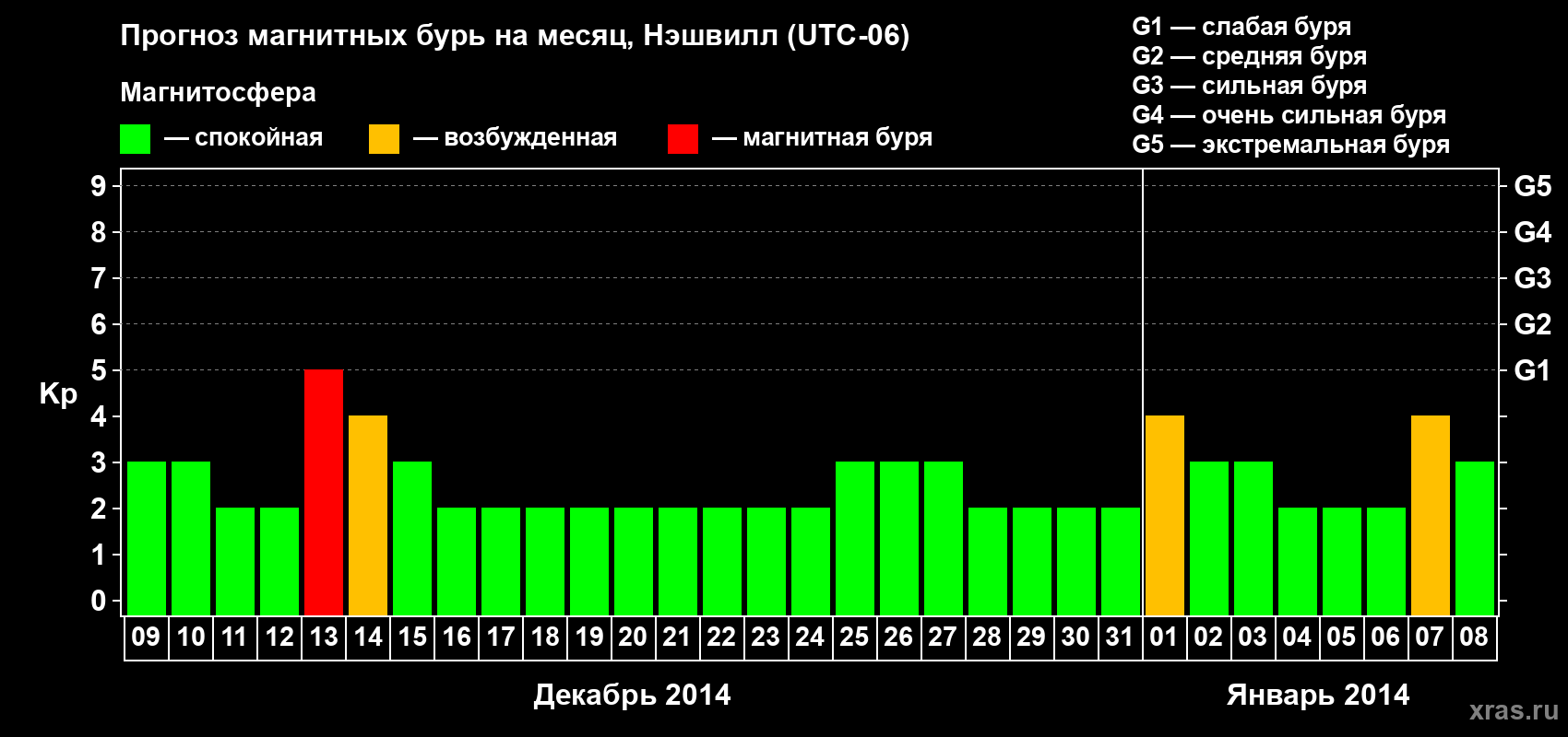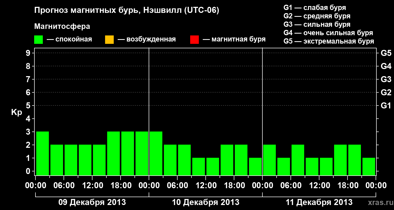 Прогноз магнитных бурь в Нэшвилле — 9 декабря 2013 года