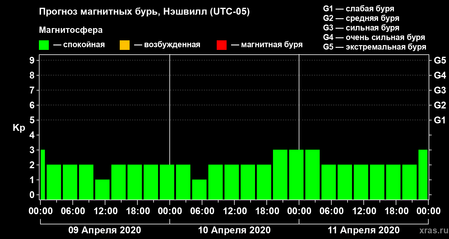 Прогноз магнитных бурь в Нэшвилле на 9 апреля 2020 года