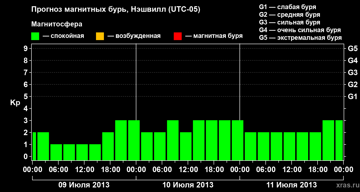 Прогноз магнитных бурь в Нэшвилле — 9 июля 2013 года