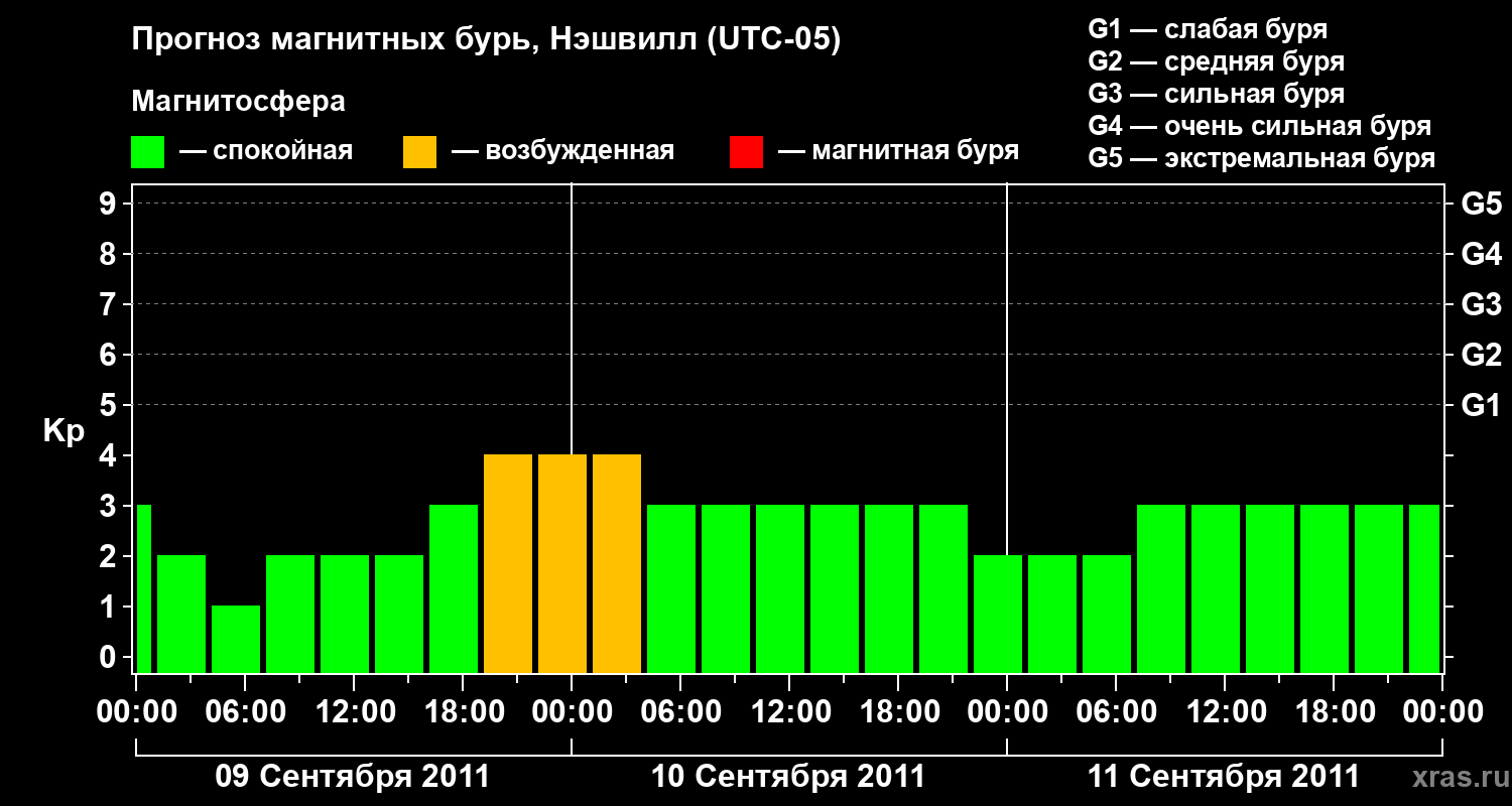 Прогноз магнитных бурь в Нэшвилле — 9 сентября 2011 года