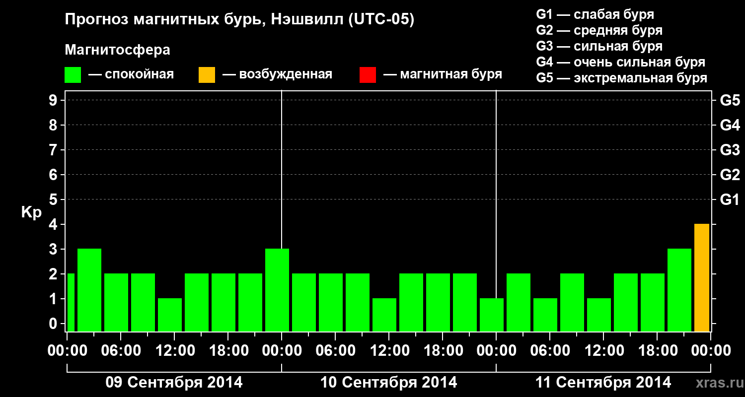 Прогноз магнитных бурь в Нэшвилле — 9 сентября 2014 года