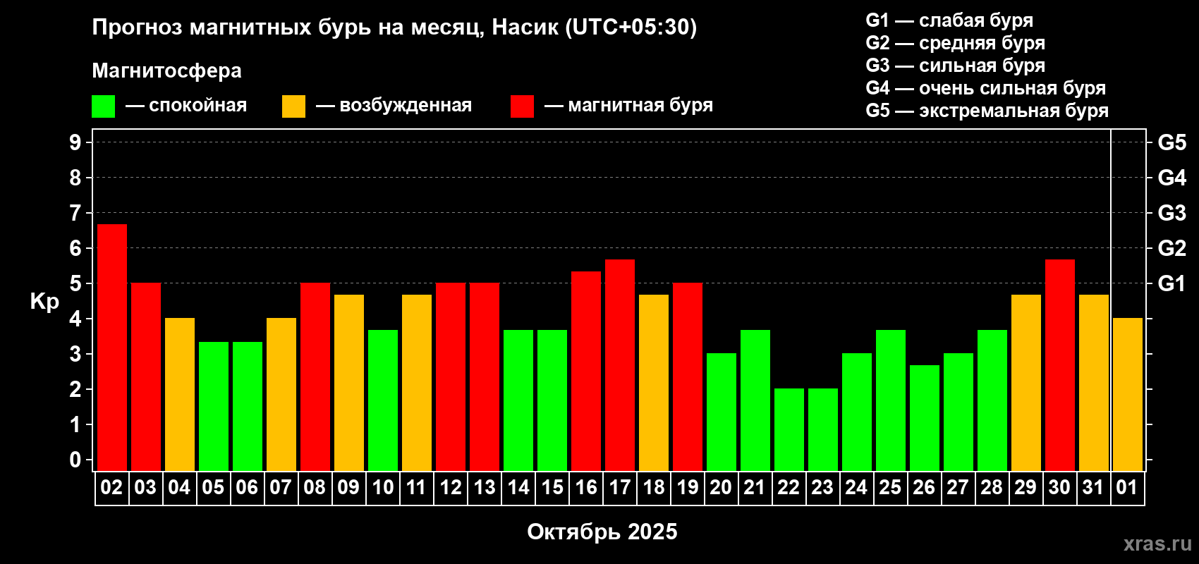 Прогноз магнитных бурь в Насике — 2 октября 2025 года
