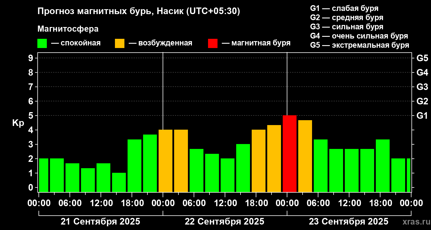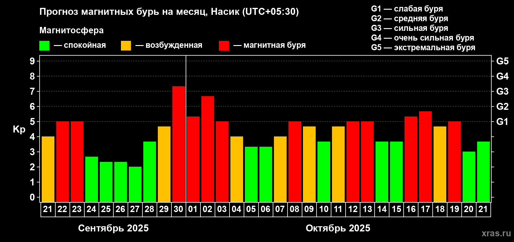 Прогноз магнитных бурь в Насике — 21 сентября 2025 года