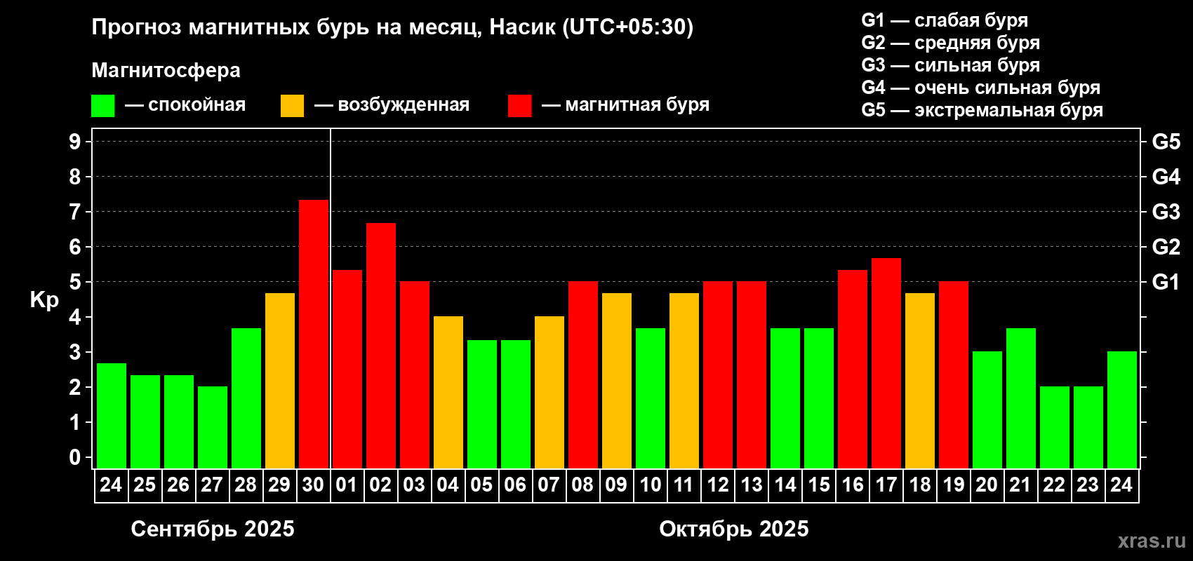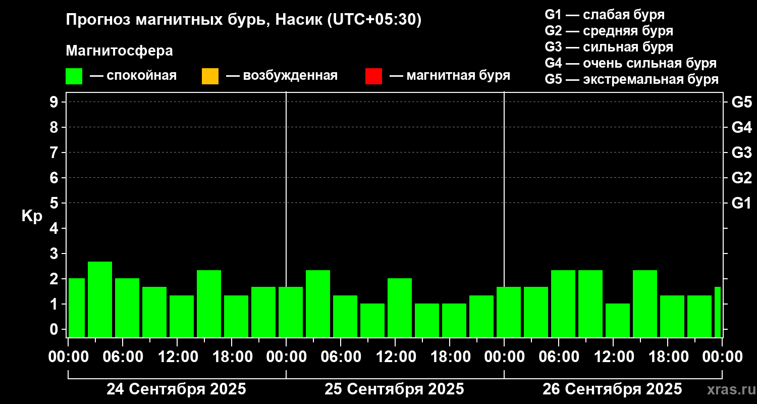 Прогноз магнитных бурь в Насике — 24 сентября 2025 года
