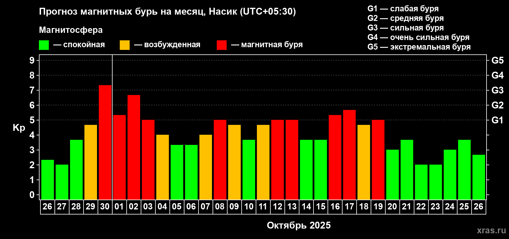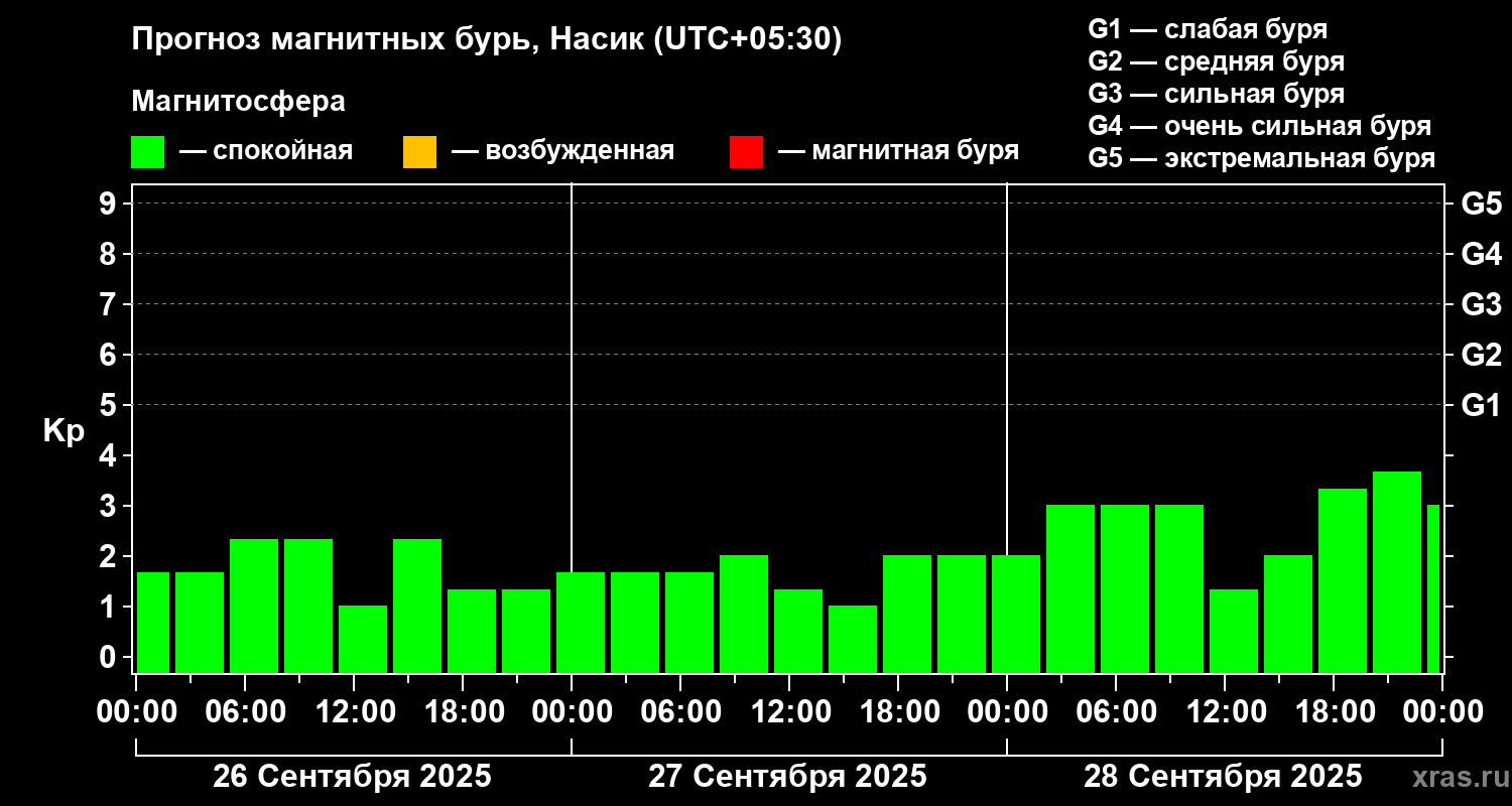 Прогноз магнитных бурь в Насике — 26 сентября 2025 года