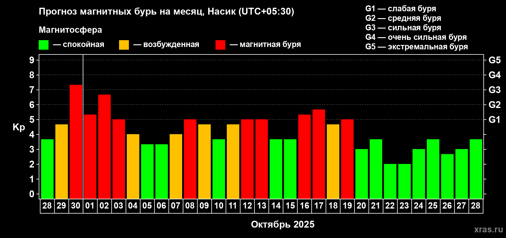Прогноз магнитных бурь в Насике — 28 сентября 2025 года