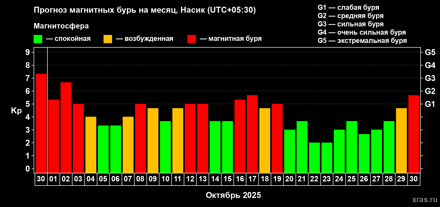 Прогноз магнитных бурь в Насике — 30 сентября 2025 года