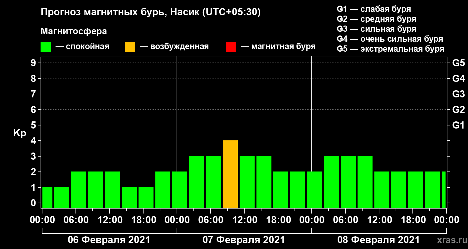 Прогноз магнитных бурь в Насике — 6 февраля 2021 года