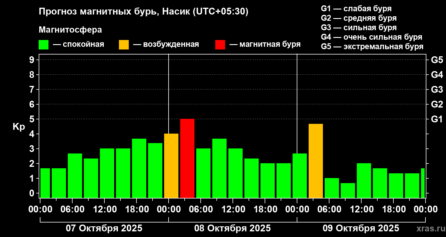 Прогноз магнитных бурь в Насике — 7 октября 2025 года