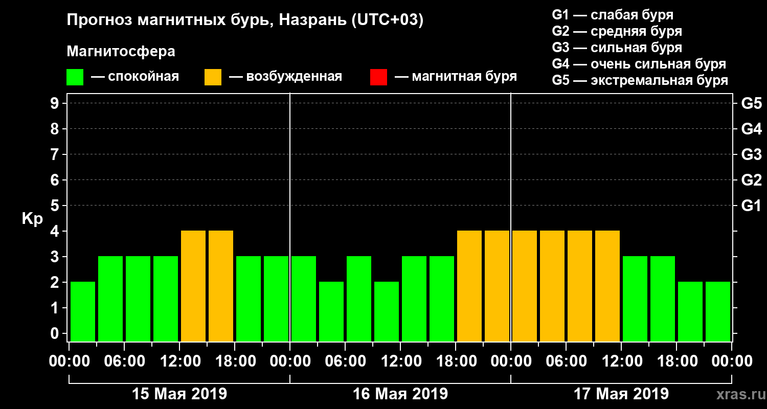 Прогноз магнитных бурь Назрани — 15 мая 2019 года