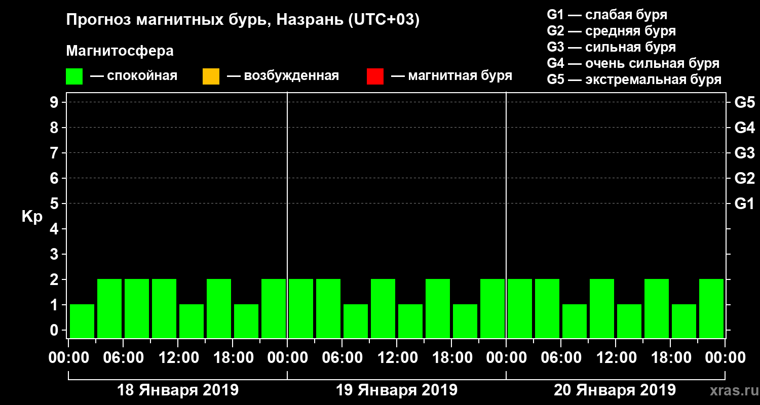 Прогноз магнитных бурь Назрани на 18 января 2019 года