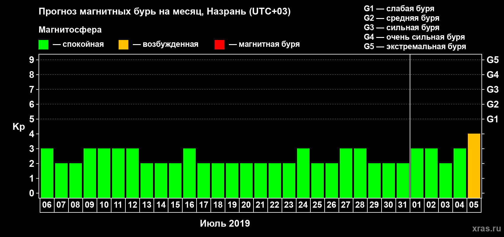 Прогноз магнитных бурь Назрани — 6 июля 2019 года
