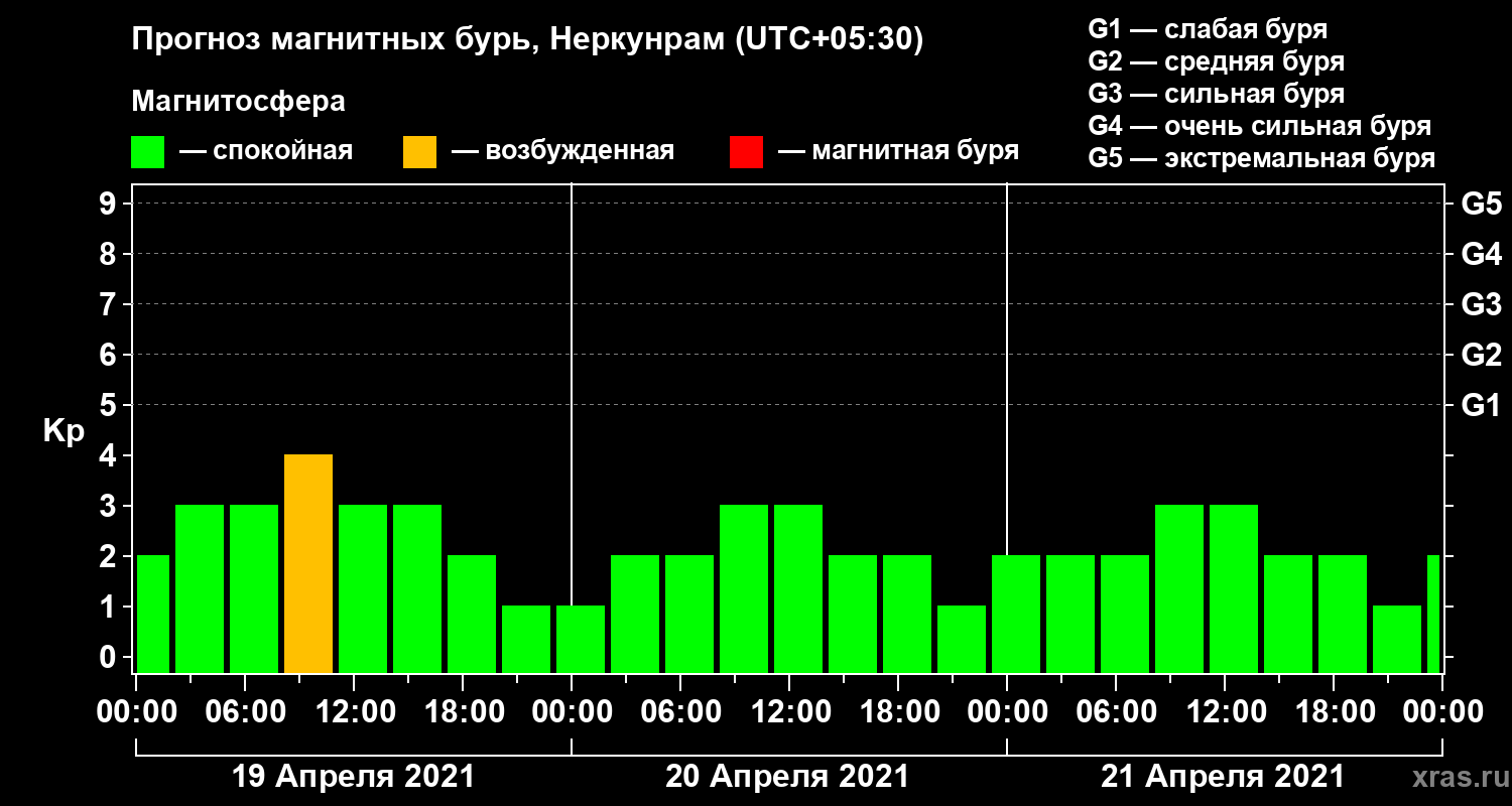 Прогноз магнитных бурь в Неркунраме на 19 апреля 2021 года