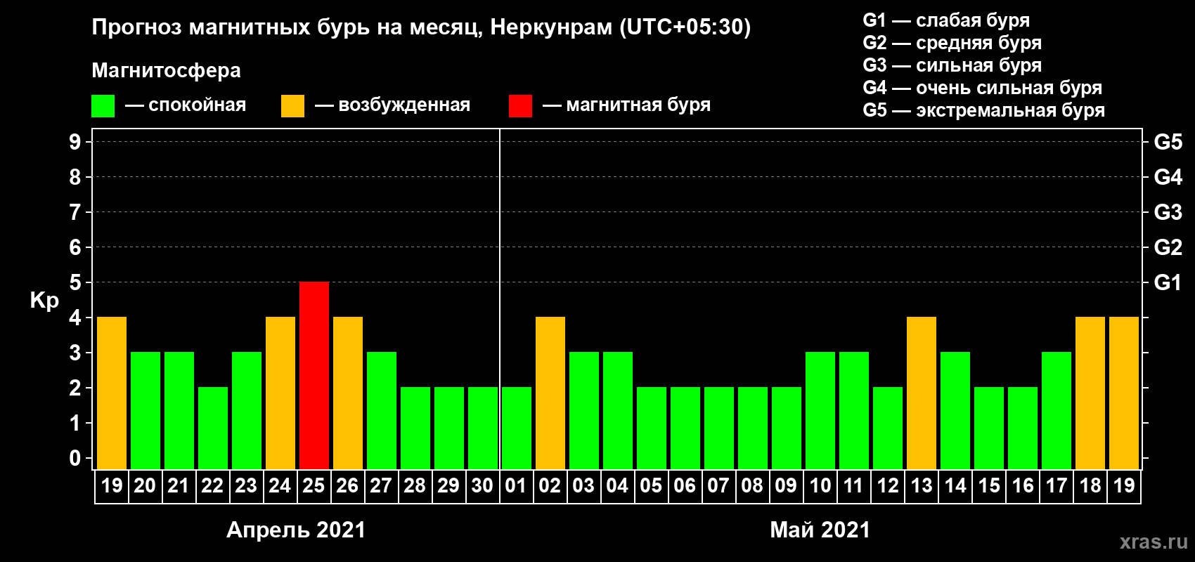 Прогноз магнитных бурь в Неркунраме — 19 апреля 2021 года