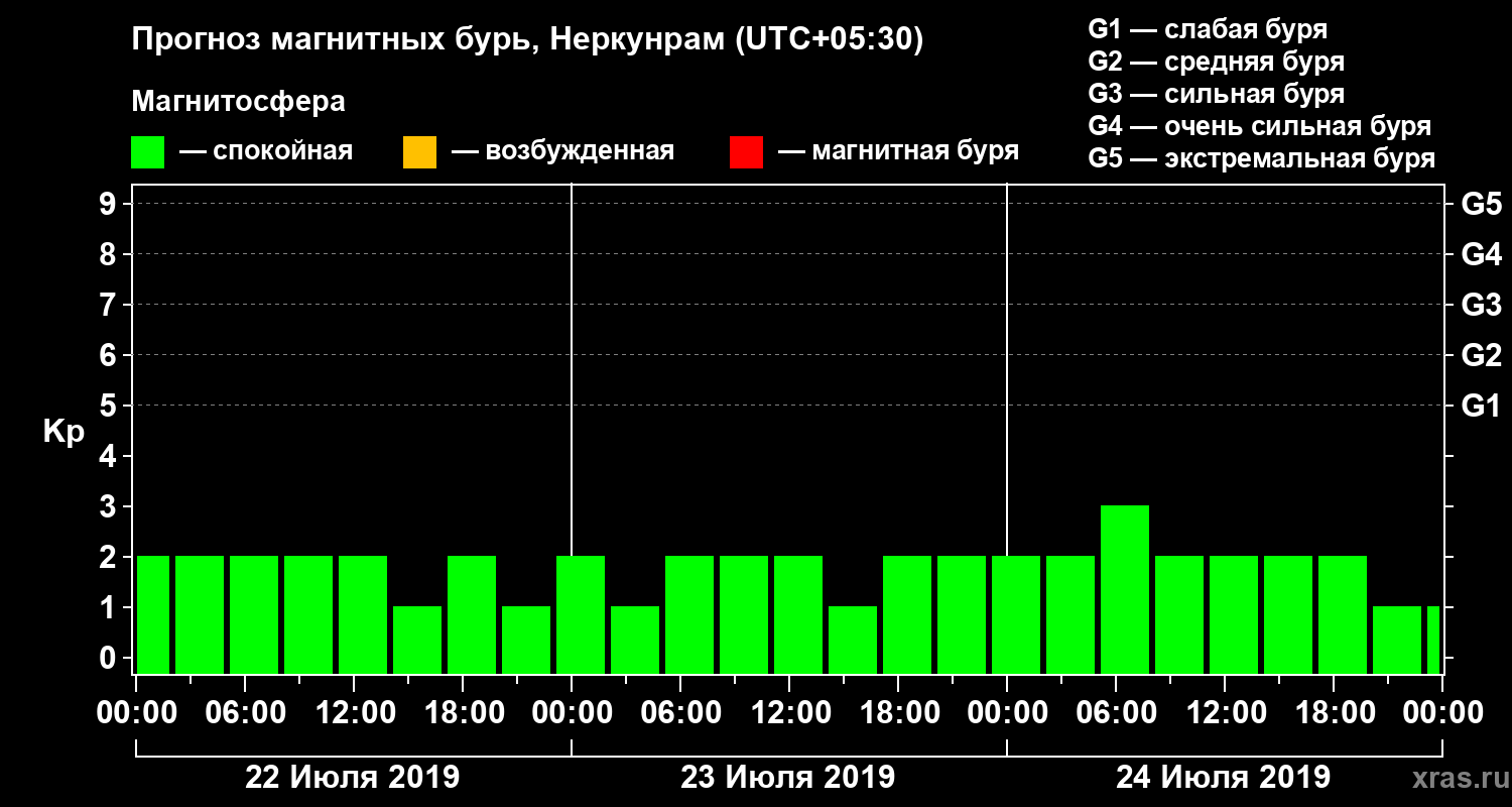 Прогноз магнитных бурь в Неркунраме — 22 июля 2019 года