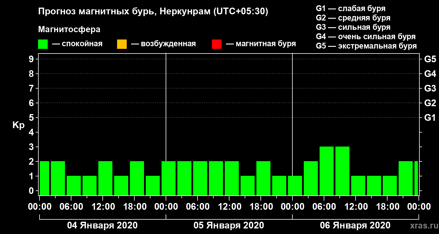 Прогноз магнитных бурь в Неркунраме на 4 января 2020 года
